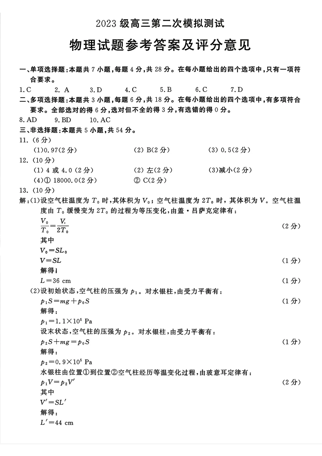 2026成都二诊物理试卷及答案,历史试卷及答案
