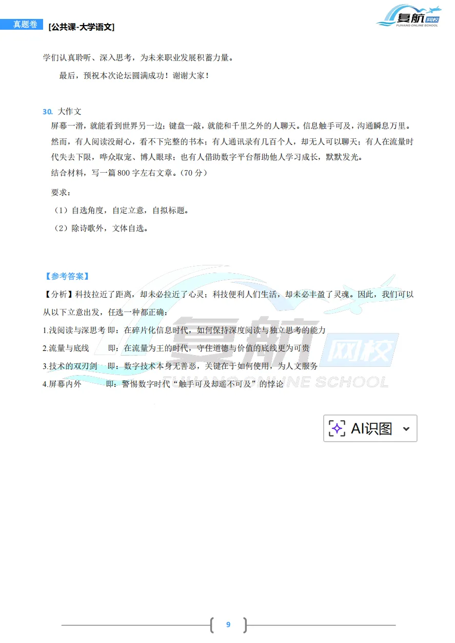 2026年江苏专转本考试语文真题及答案
