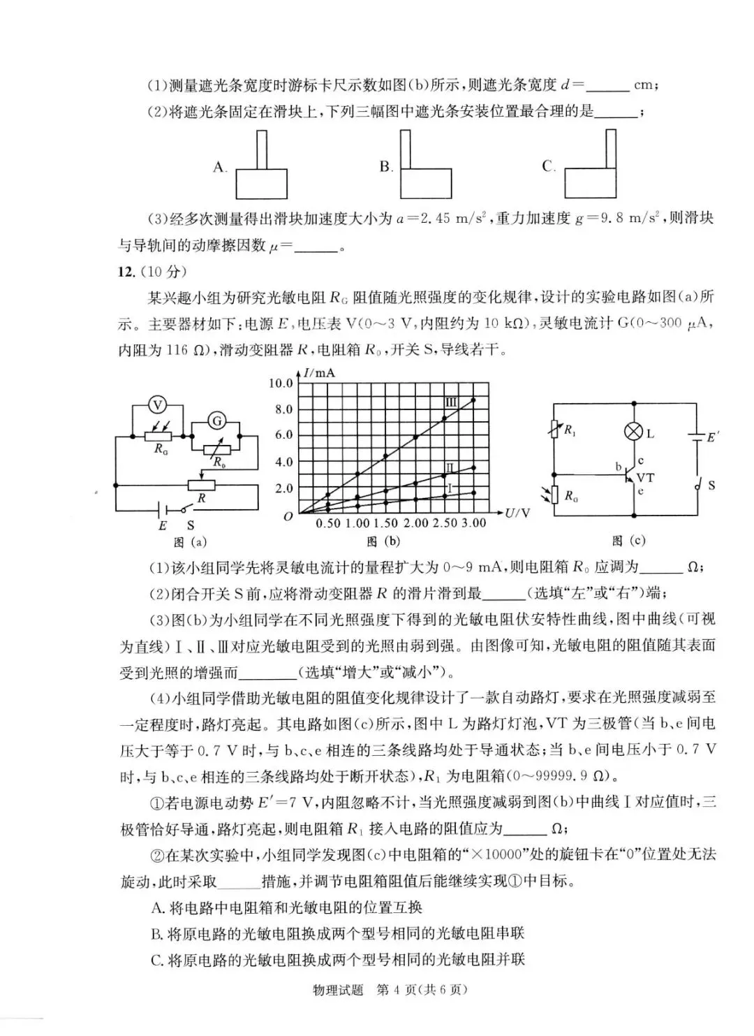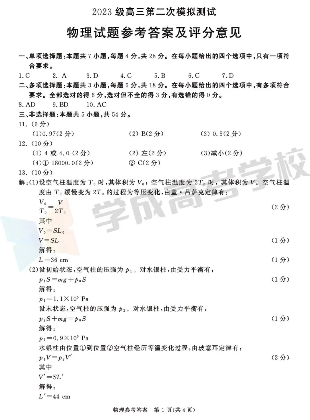 2026届成都二诊物理试卷及参考答案新鲜出炉!