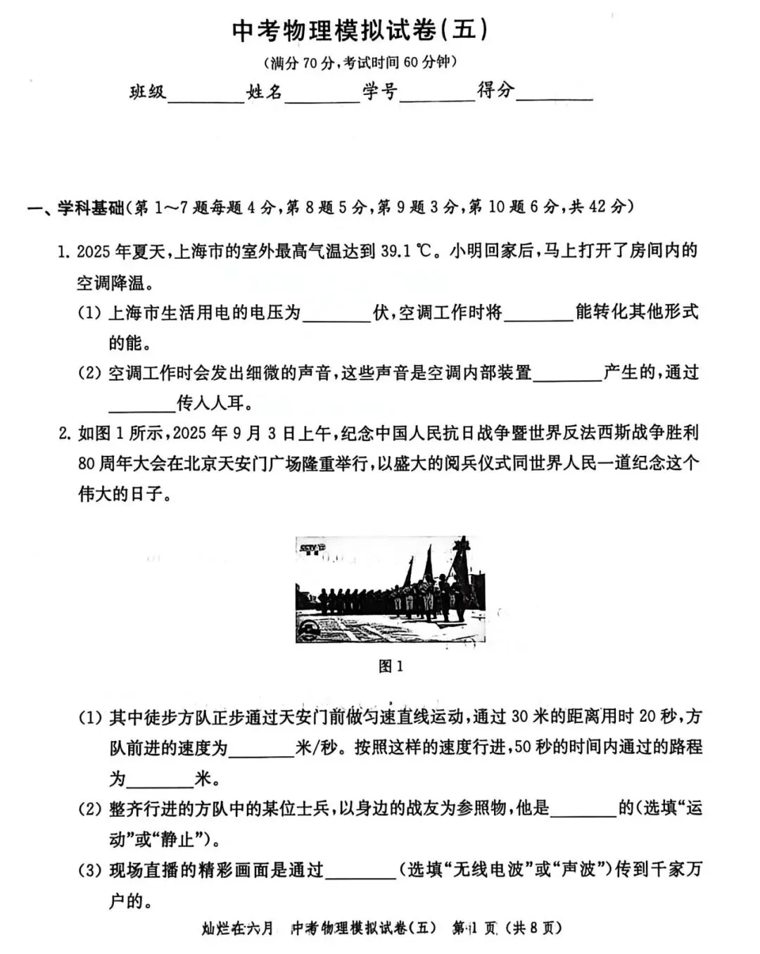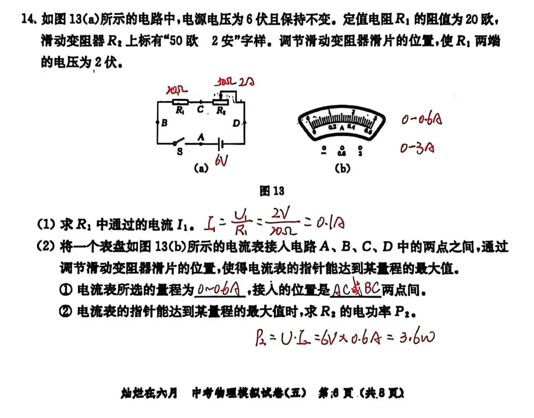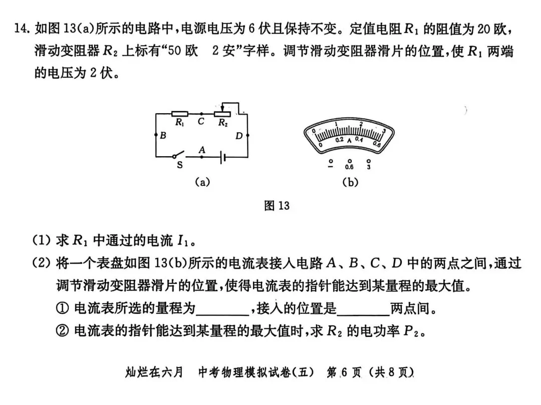 这是26版灿烂在六月试卷5,试卷难度中规中矩,但也有部分题目比较冷门,比如第6题的第二小问涉及到最小微粒的判断;其他题目,如电学计算、压强计算以及电学实验题都是平时训练的常规题目,正常发挥即可。 (试卷如下)