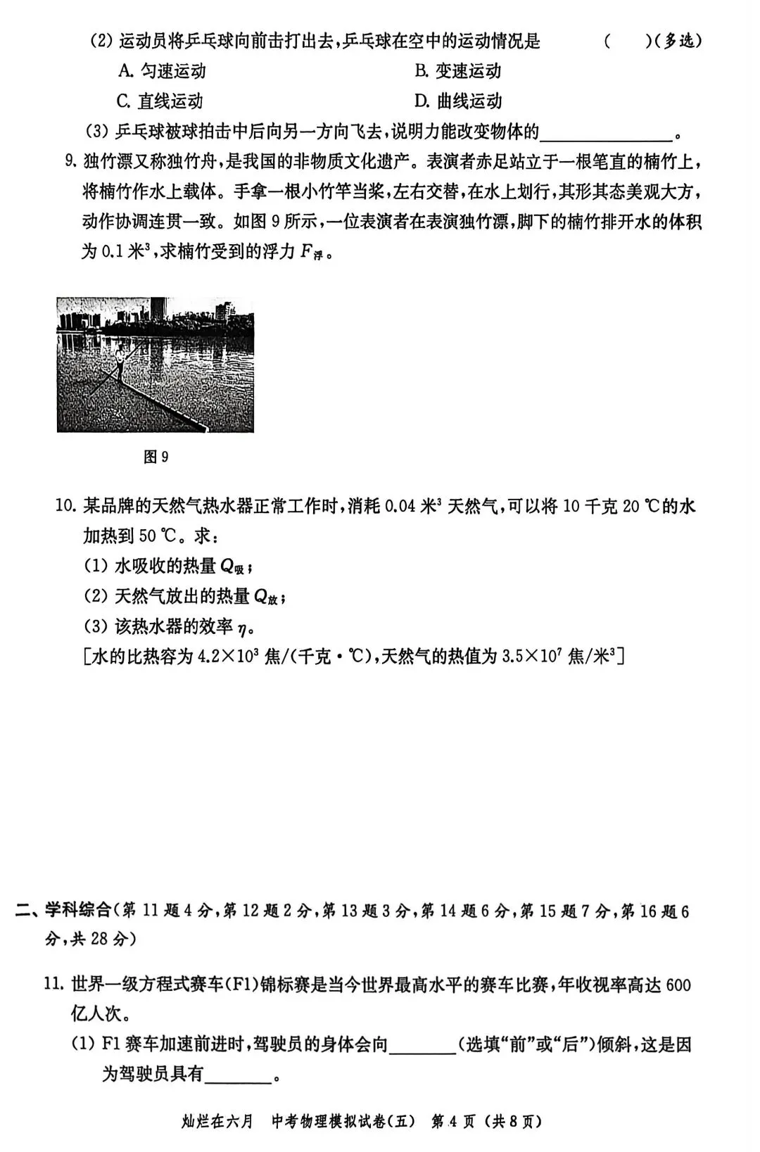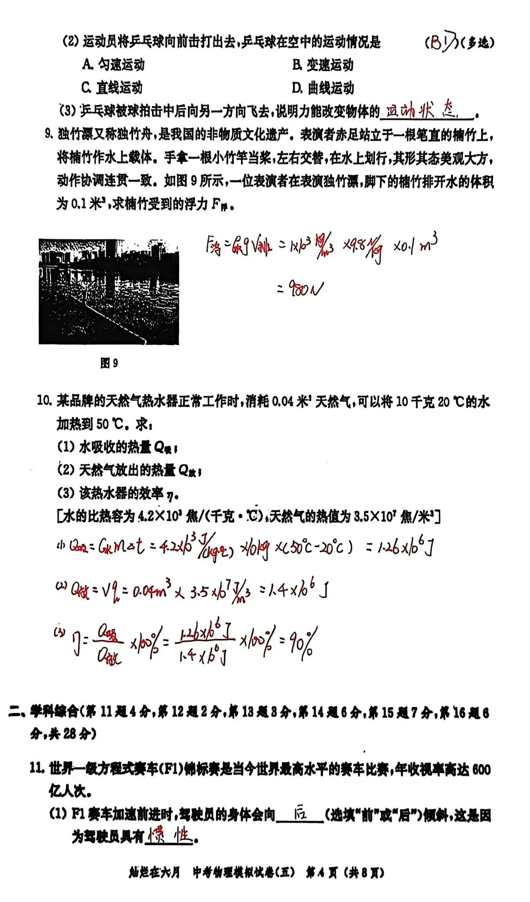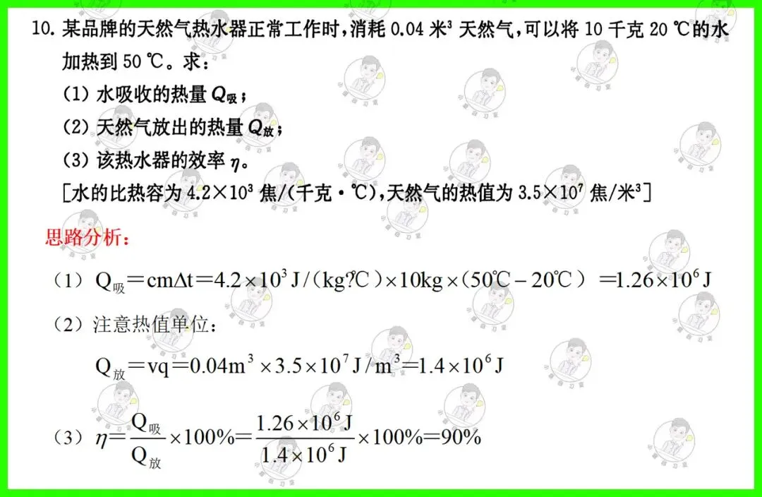 第10题:热量的计算,注意天然气热值的单位及计算;