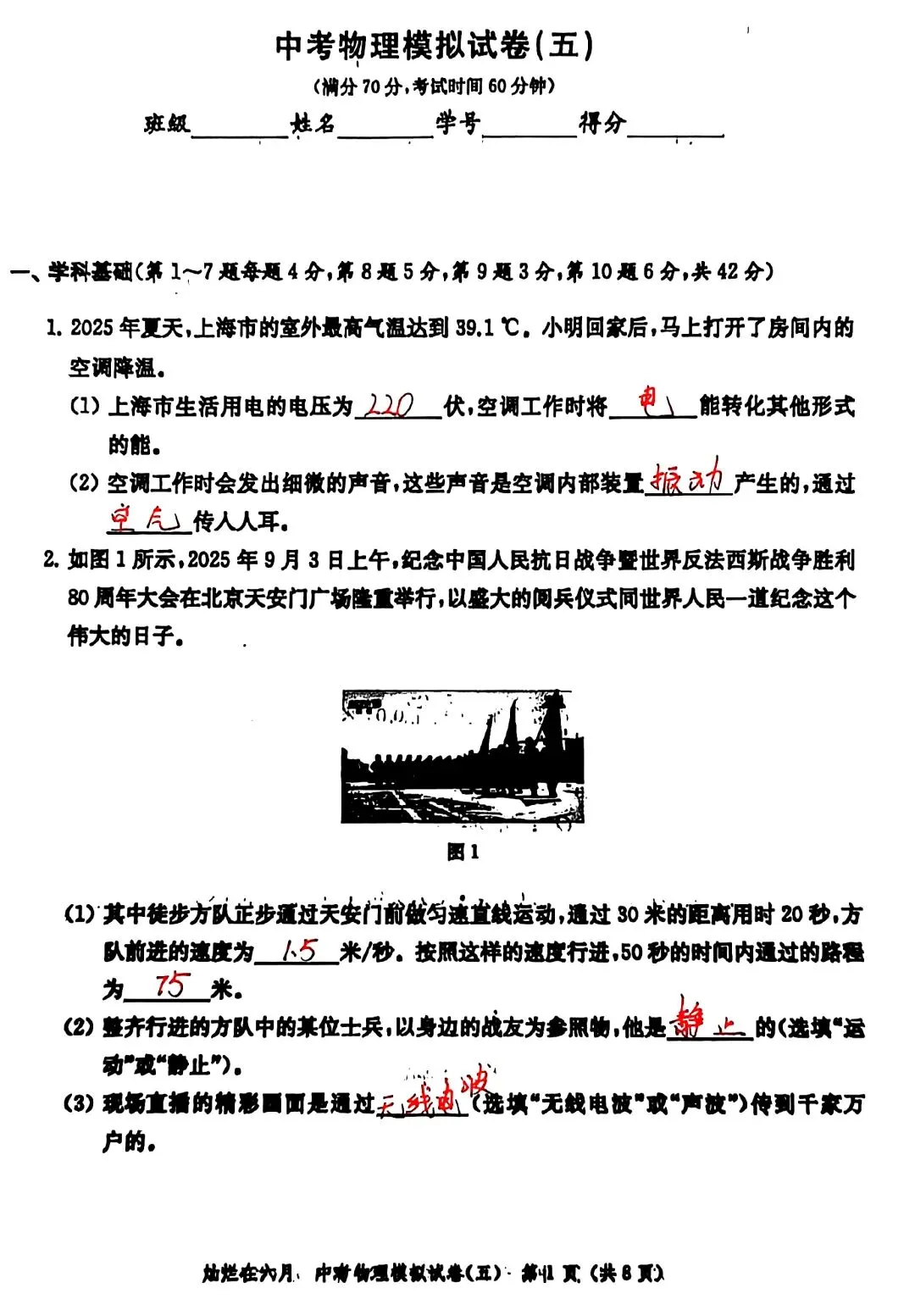 2026中考物理冲刺试卷5分析