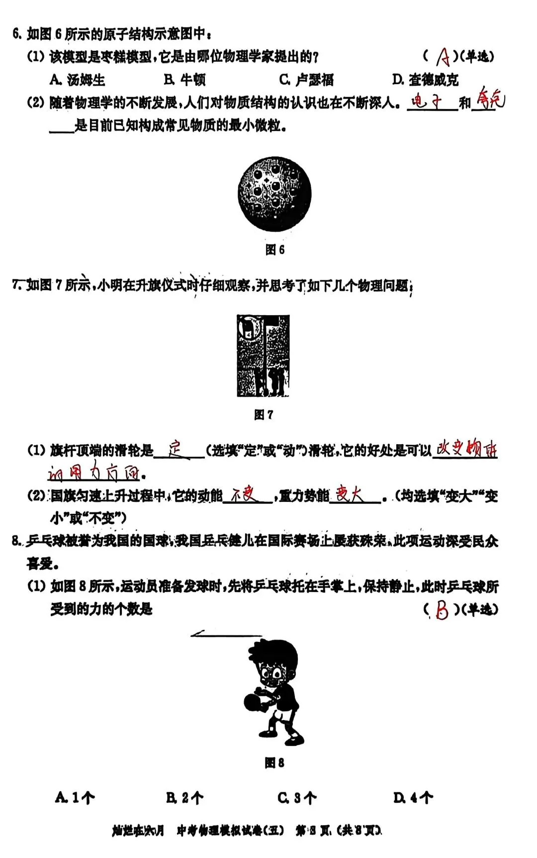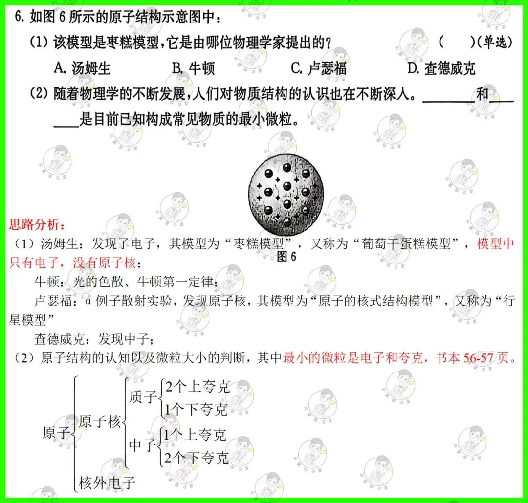 第6题:考查物理学家的成就,以及微观粒子的认知,其中最小的微粒是电子和夸克(书本56-57页);