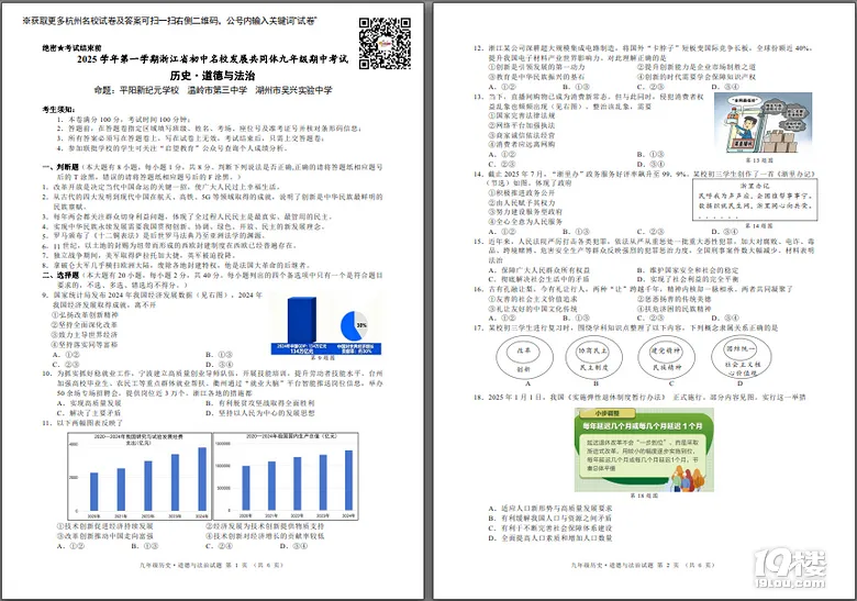 今天为大家准备的是家长上传的2025年浙江省初中名校发展共同体期中测试九年级历史法治试卷,获取试卷完整电子版pdf免费下载及参考答案分析请点击文中的小程序!