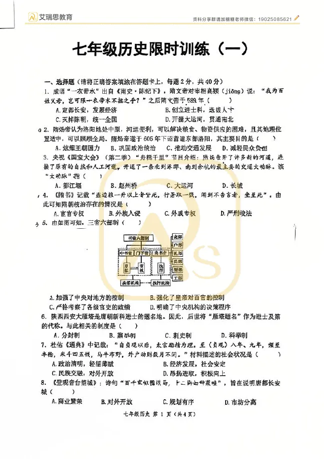 免费领取!名校九年级历史法治期中试卷,可下载打印 | 分享