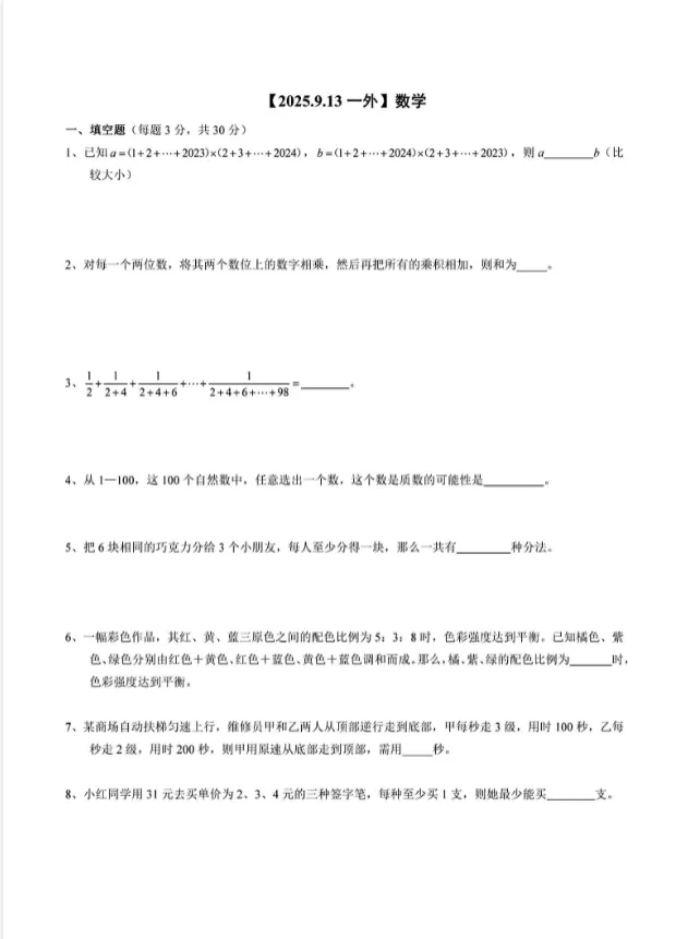 【真题分享】七龙珠(一外)数学真题试卷(附解析)