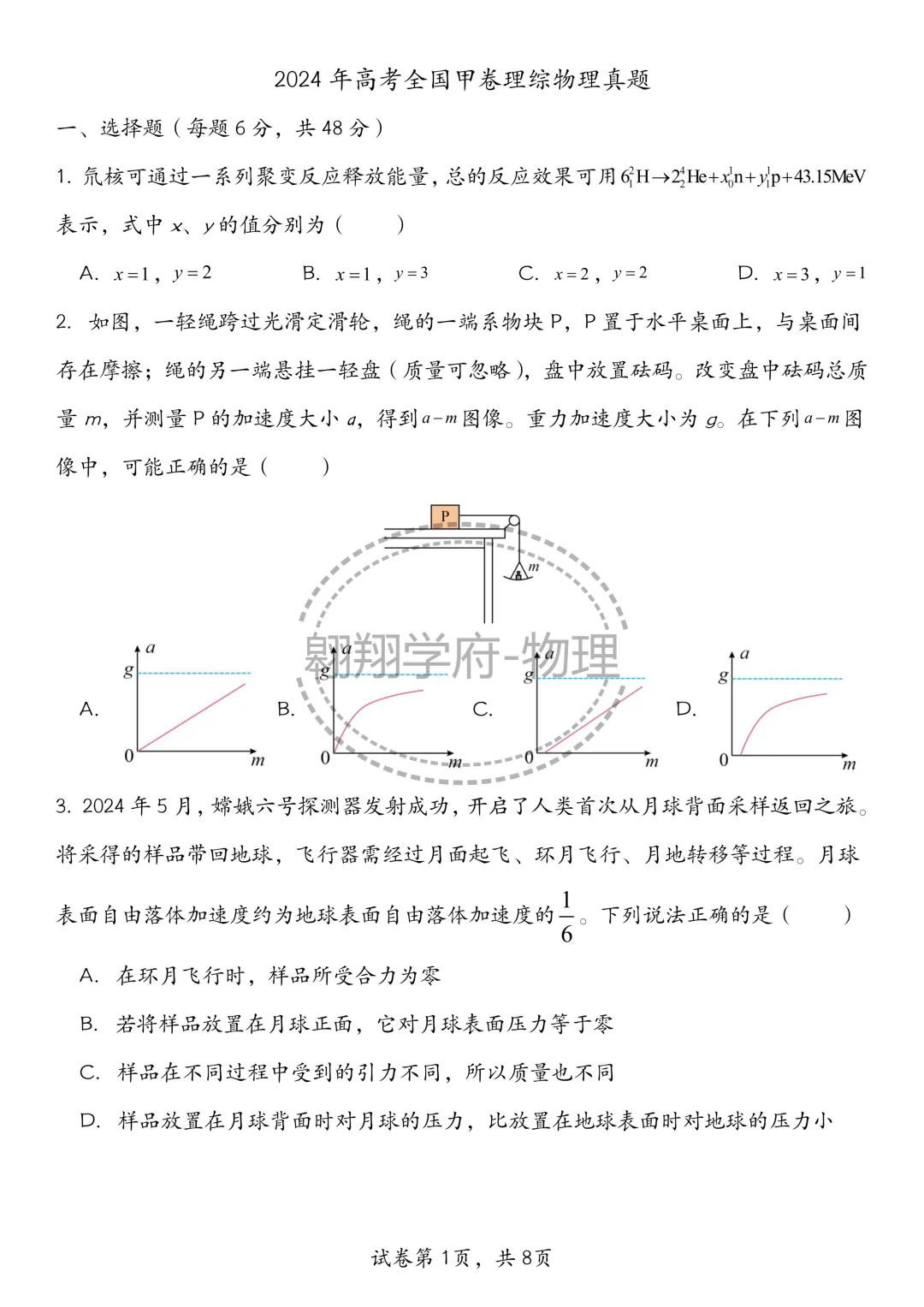 2024年全国甲卷物理部分试卷
