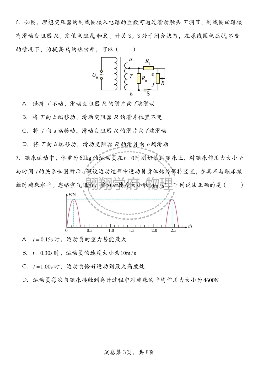 石家庄裕华区基模物理试卷