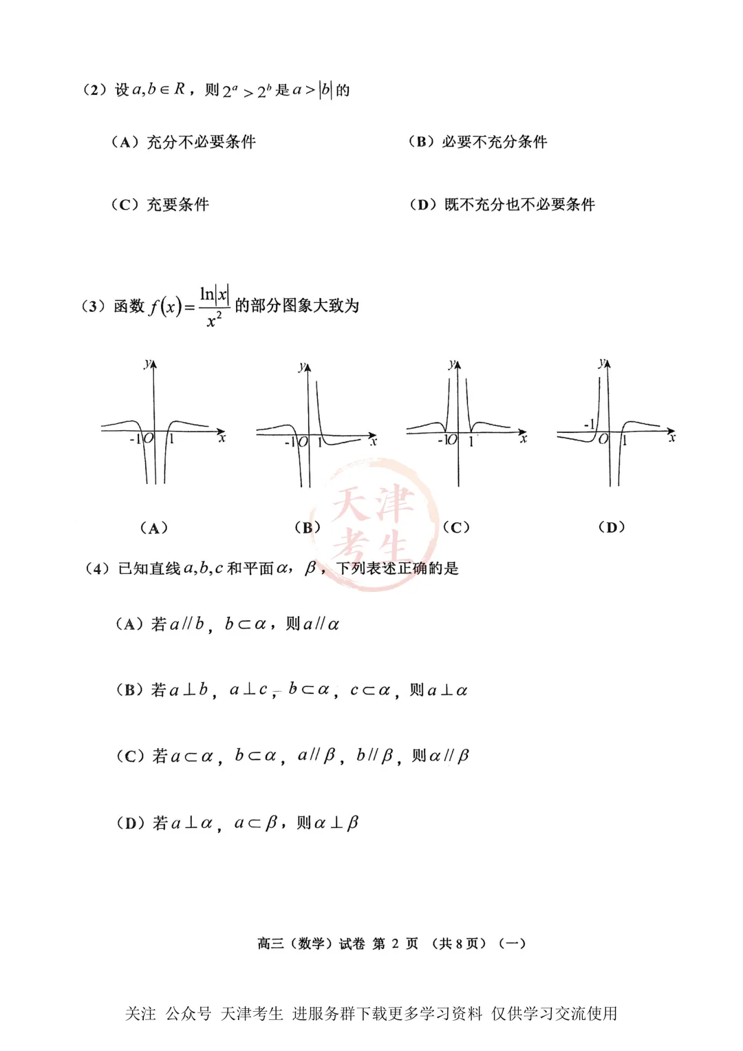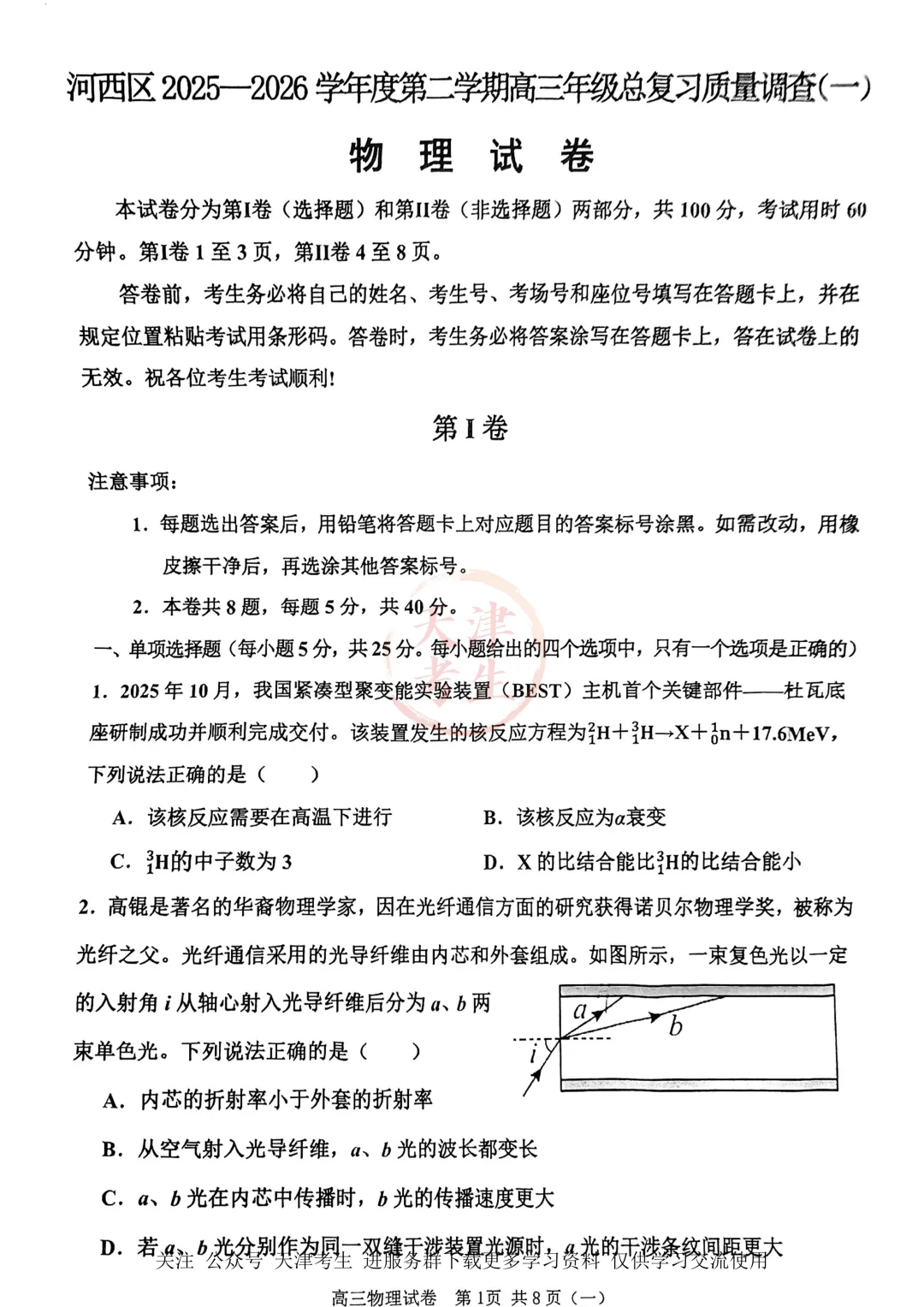 >高考一模河西区语文数学物理政治英语试卷与答案