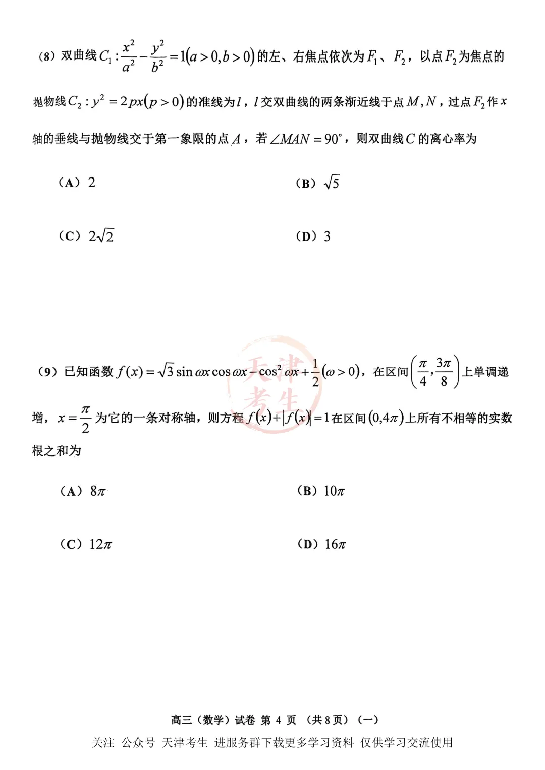 试卷更新|红桥区九年级结课考7科试卷+答案(无水印版)