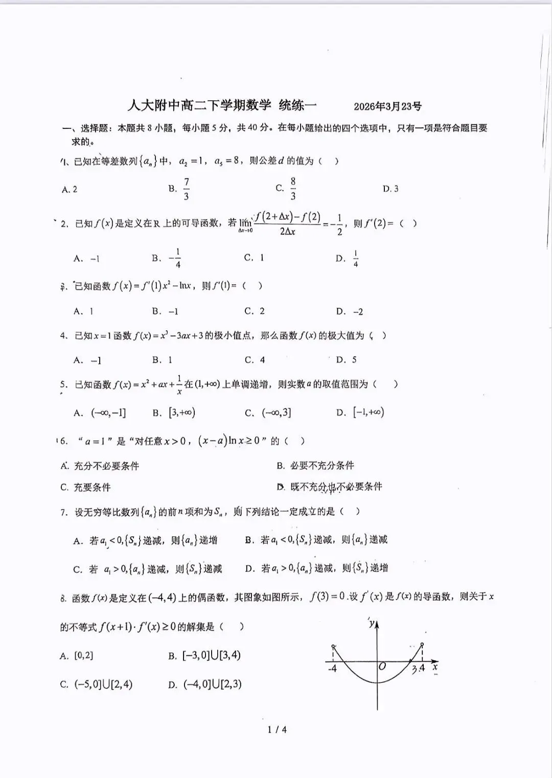 2026年高三名校联盟数学评估试卷及详细答案解析