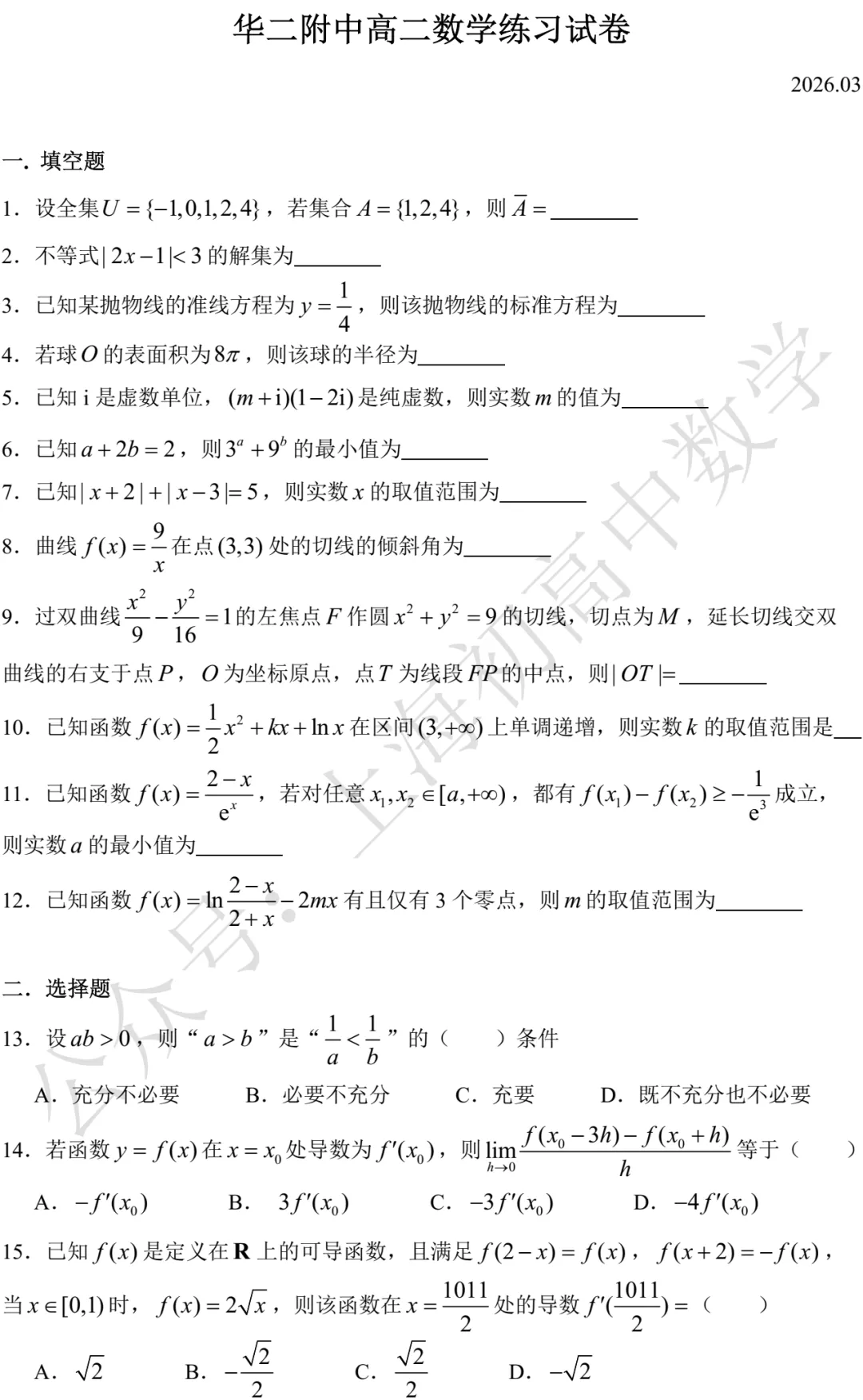 往期试卷资料 2026上海春考数学试卷及答案 近五年上海春考数学试卷及详答 2025上海高考数学试卷及答案 2024上海春考数学试卷及详答