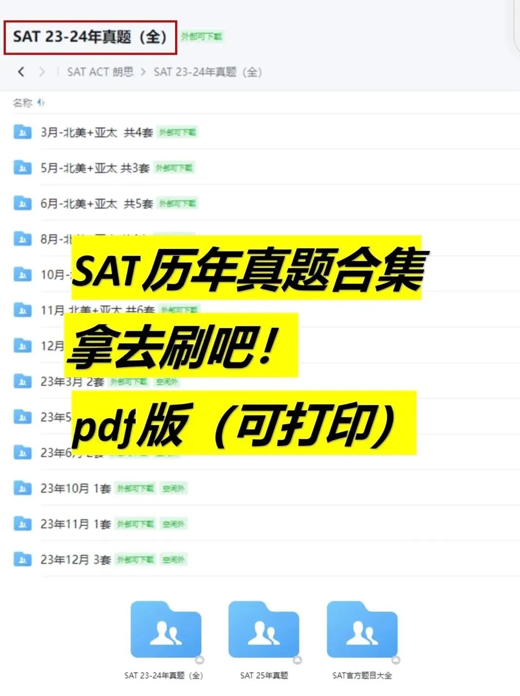 今天给大家整理了SAT历年考试真题,高清PDF免费分享,快来领取吧