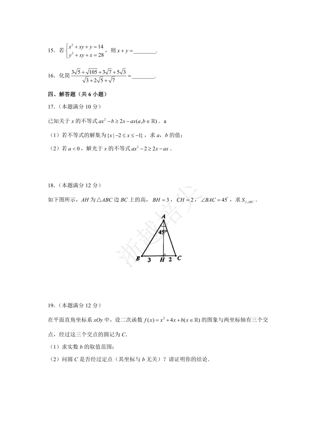 提前招|宁波市镇海中学自主招生考试数学试卷