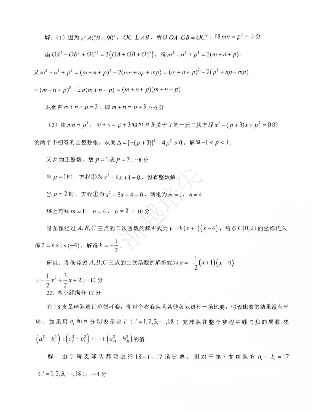 答案更新|2025年杭州第二中学自主招生签约选拔数学试卷