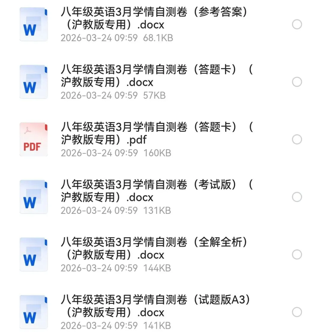 2026年新《新教材译林版》初二下册第1次月考试题&&答案(含听力mp3) 试卷1:https://pan.quark.cn/s/25ac45eb887c