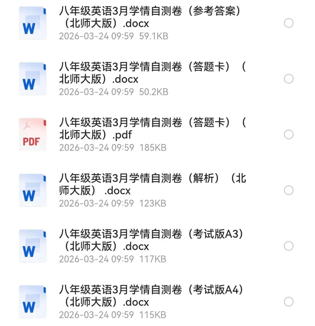 2026年新《新教材北师大版》初二下册第1次月考试题&&答案(含听力mp3) 试卷1:https://pan.quark.cn/s/e098731a1d13