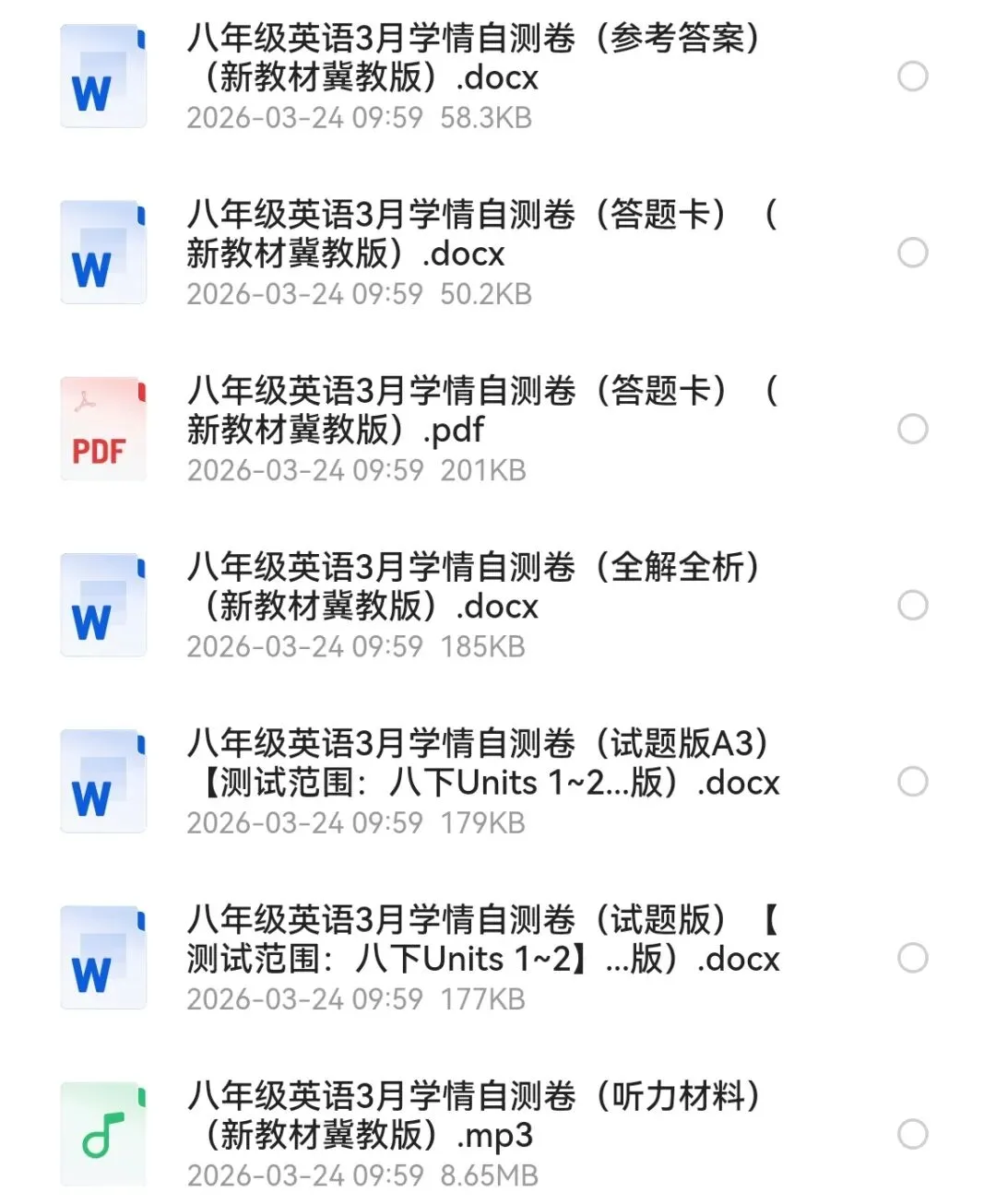 2026年新《新教材冀教版》初二下册第1次月考试题&&答案(含听力mp3) 试卷1:https://pan.quark.cn/s/67a71f3def5c