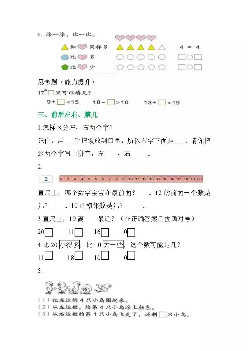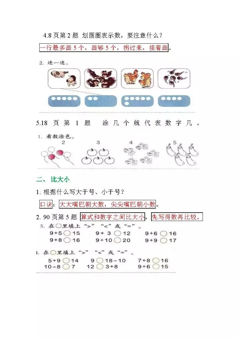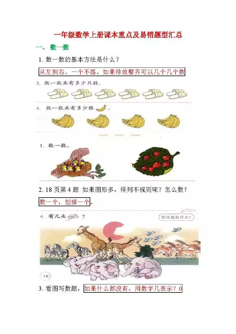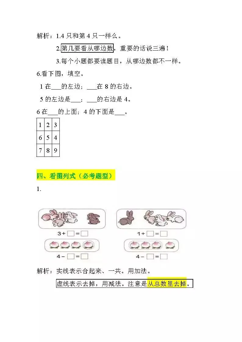 小学一年级数学上册必背知识点整理,孩子一定会考到!