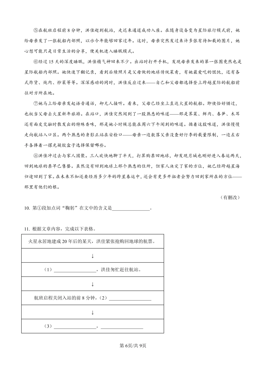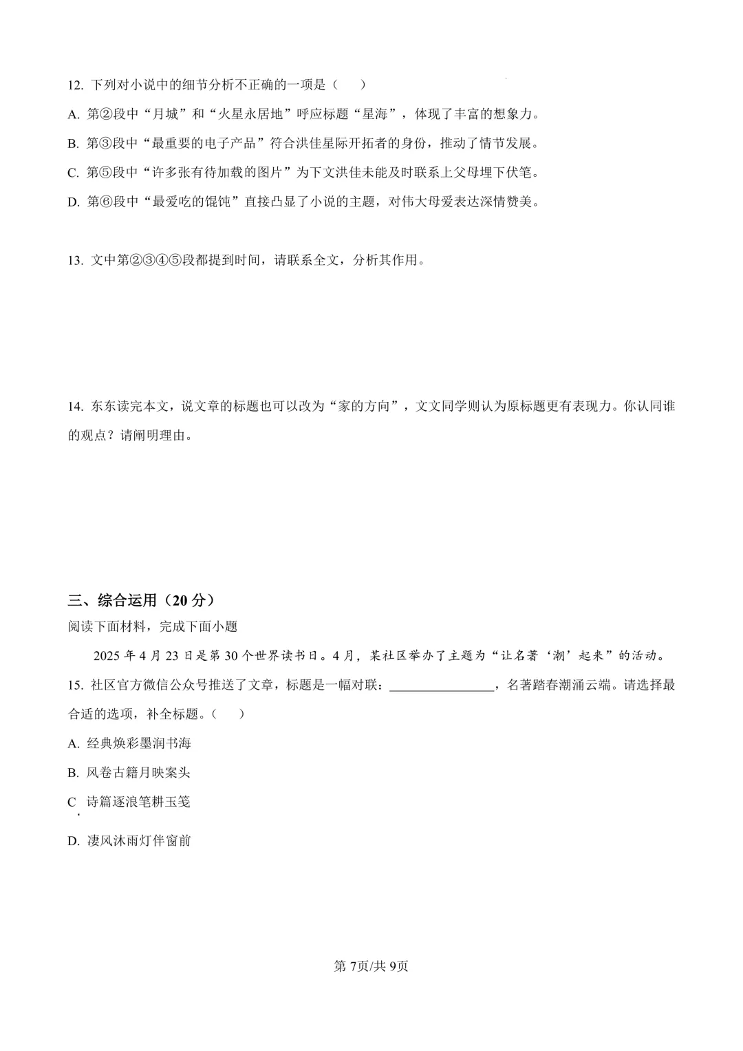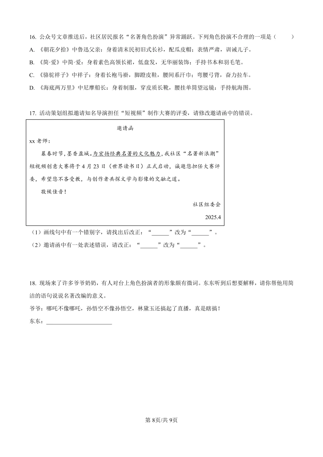 >2025届上海市浦东新区初三二模语文试卷(原卷版+解析版)