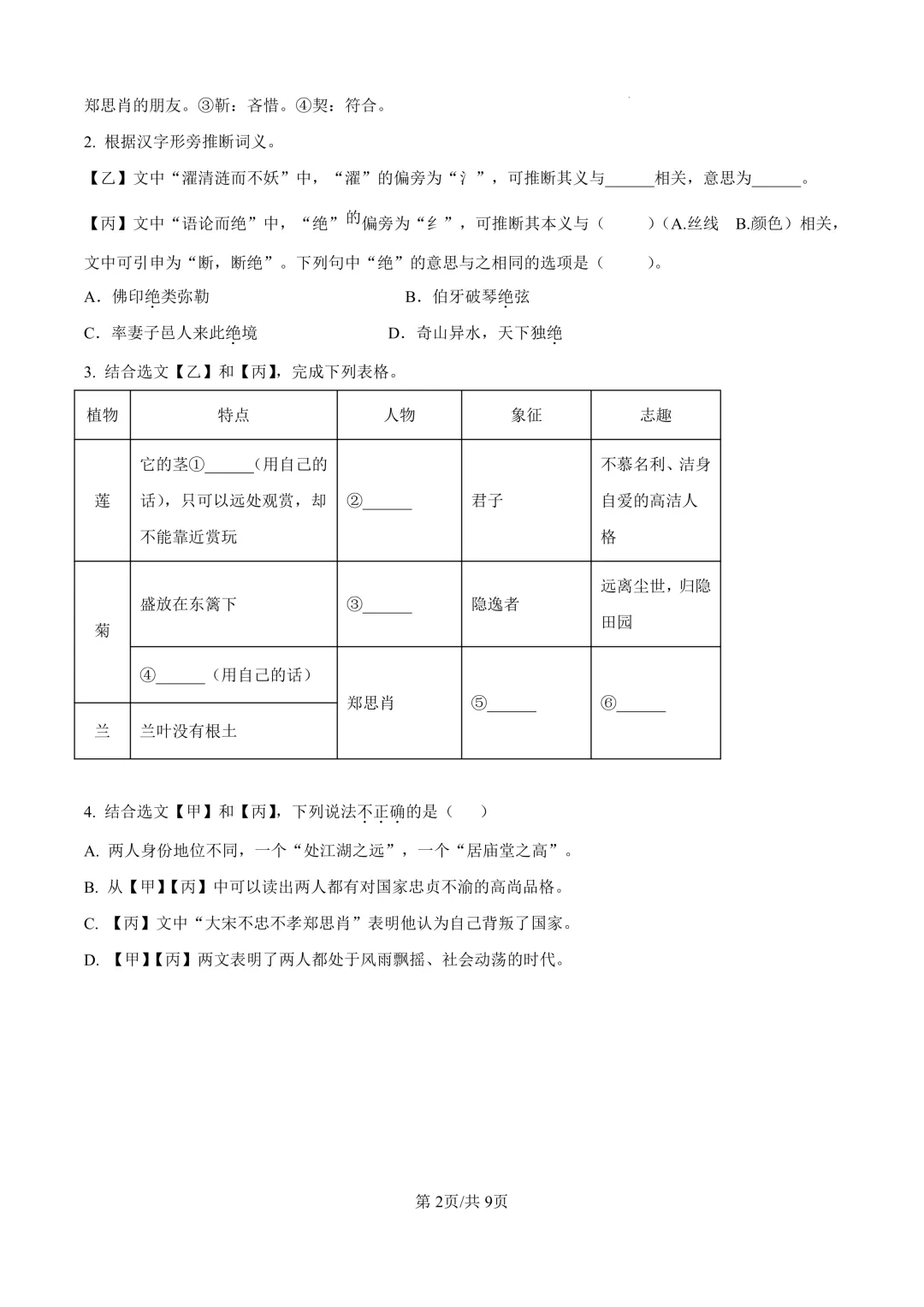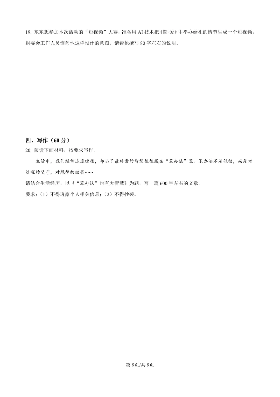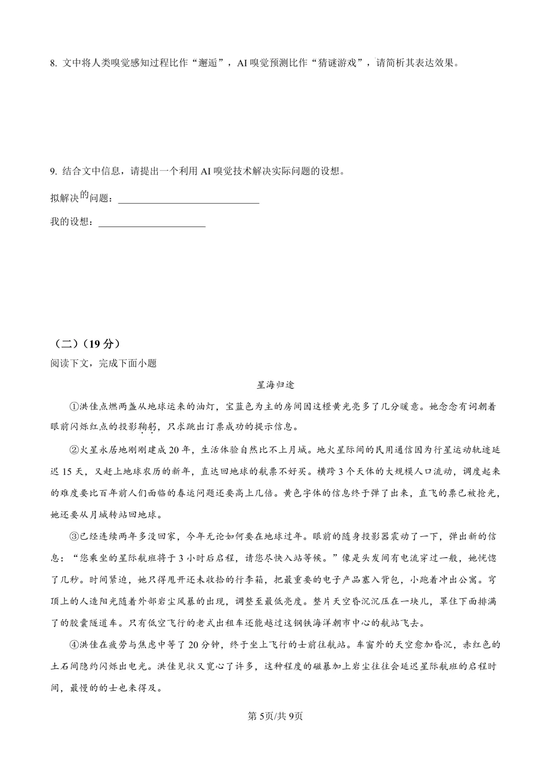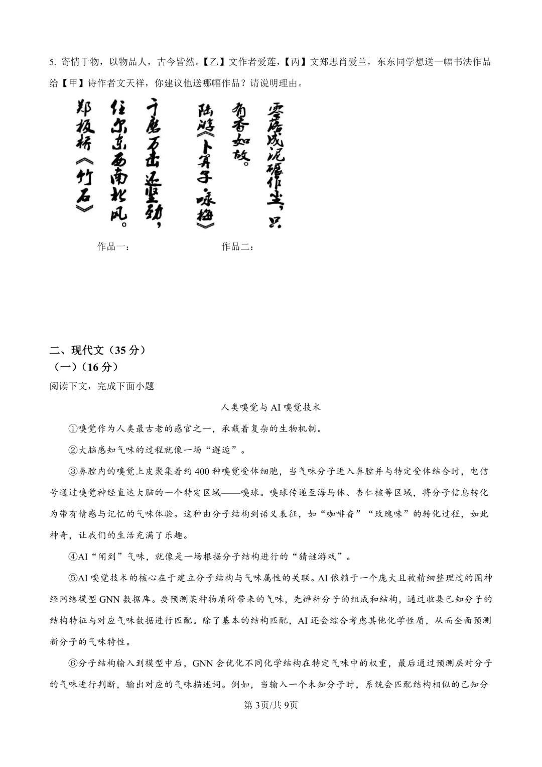 >2025届上海市浦东新区初三二模语文试卷(原卷版+解析版)