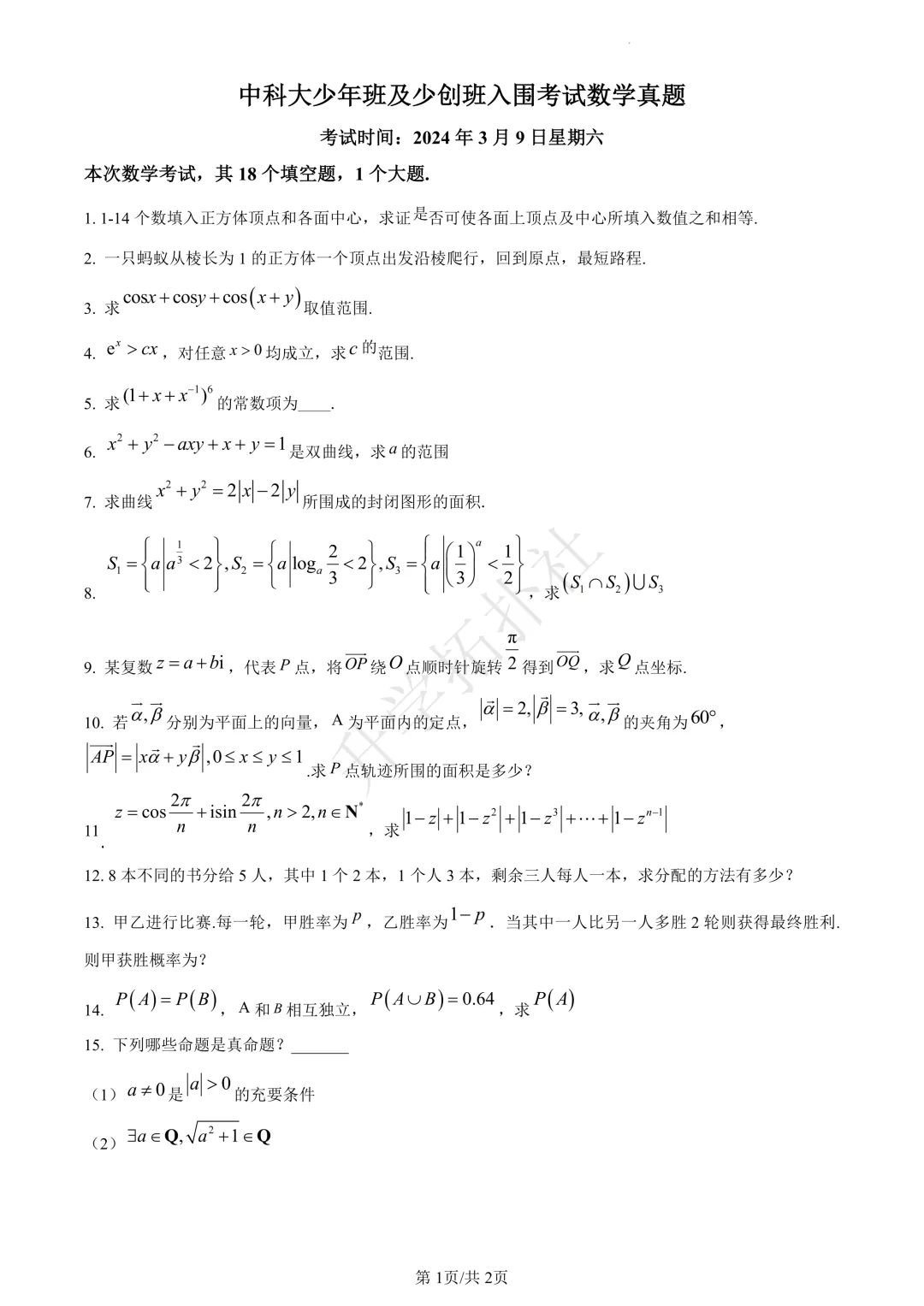 当前位置:首页>考研真题>2024年中科大少年班创新班入围考试数学真题