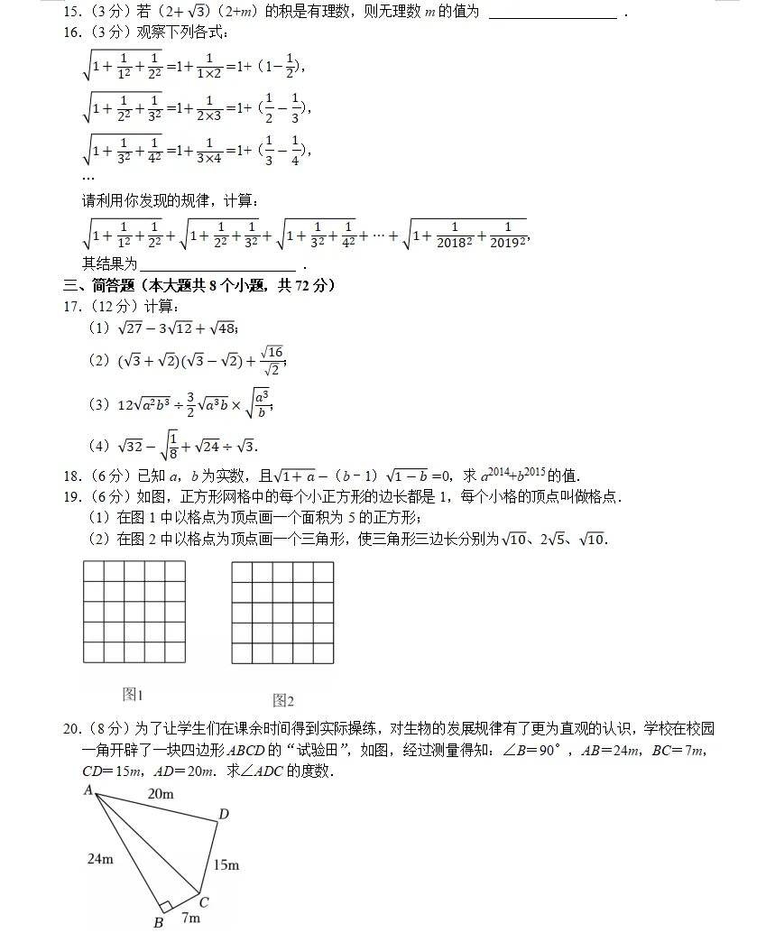 >第四套八年级(下)月考数学试卷(3月份)ren4