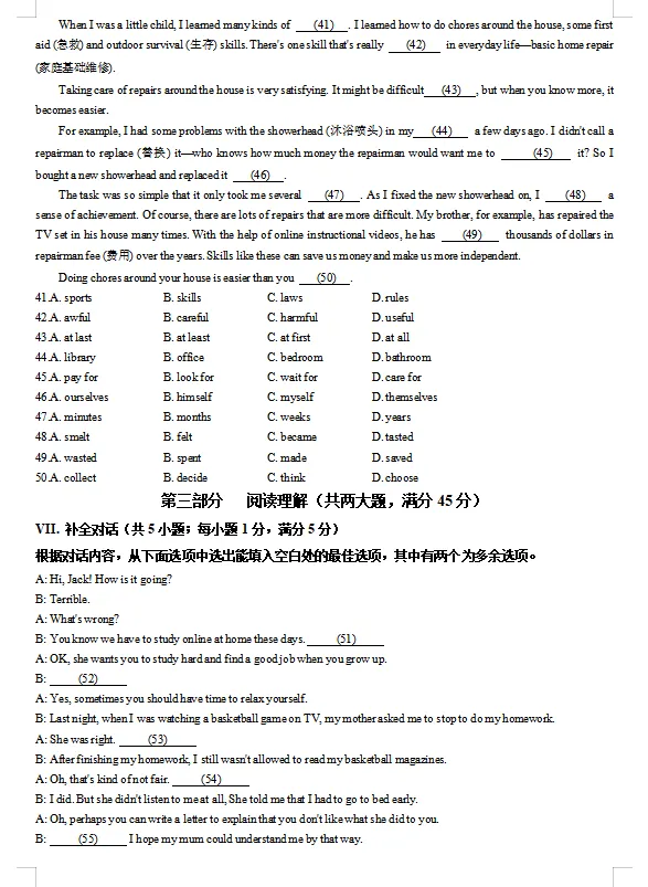 试卷分享:巴蜀中学高2026届3月适应性月考(七)英语试卷
