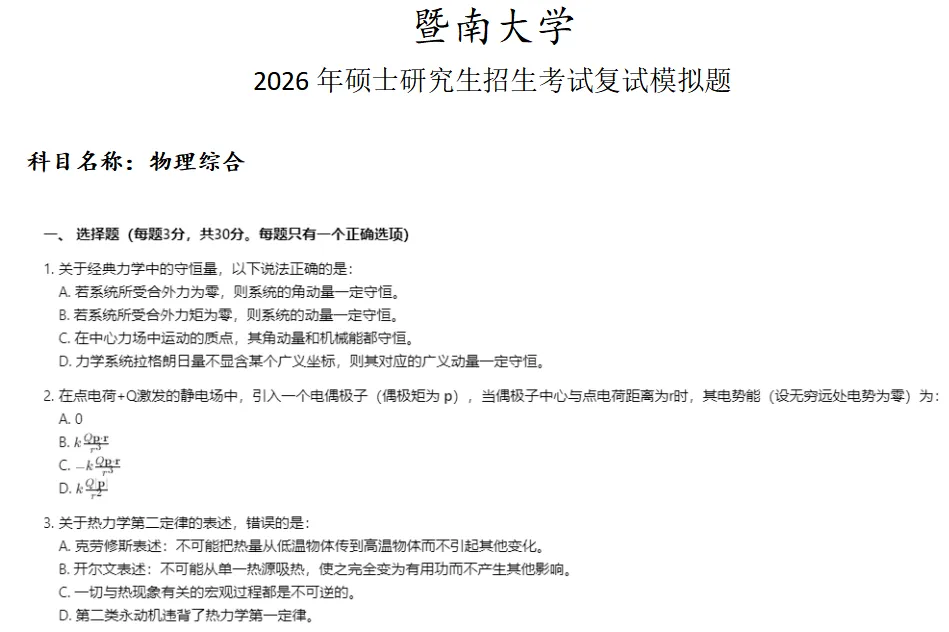 当前位置:首页>考研真题>暨南大学物理综合考研复试真题模拟