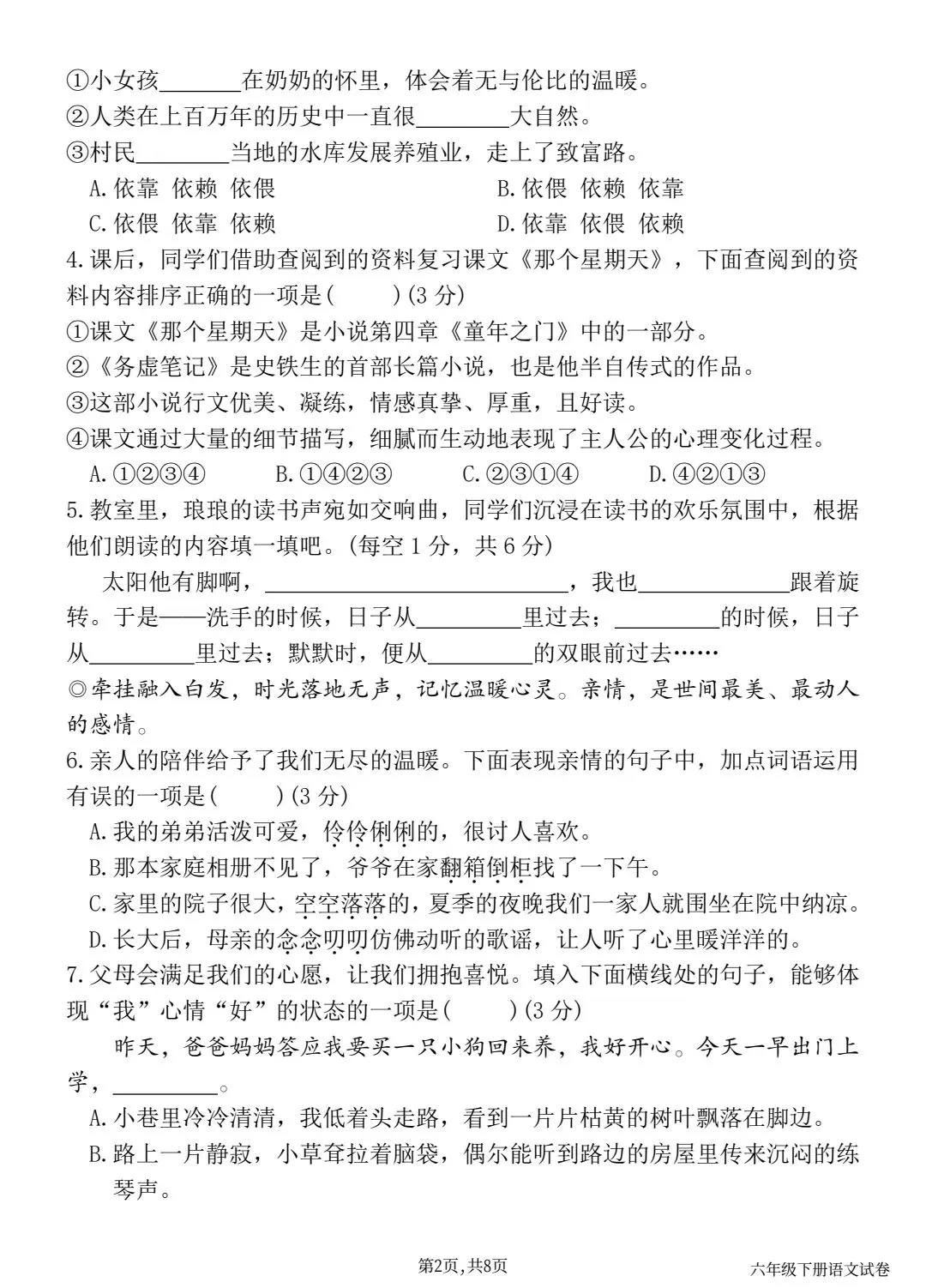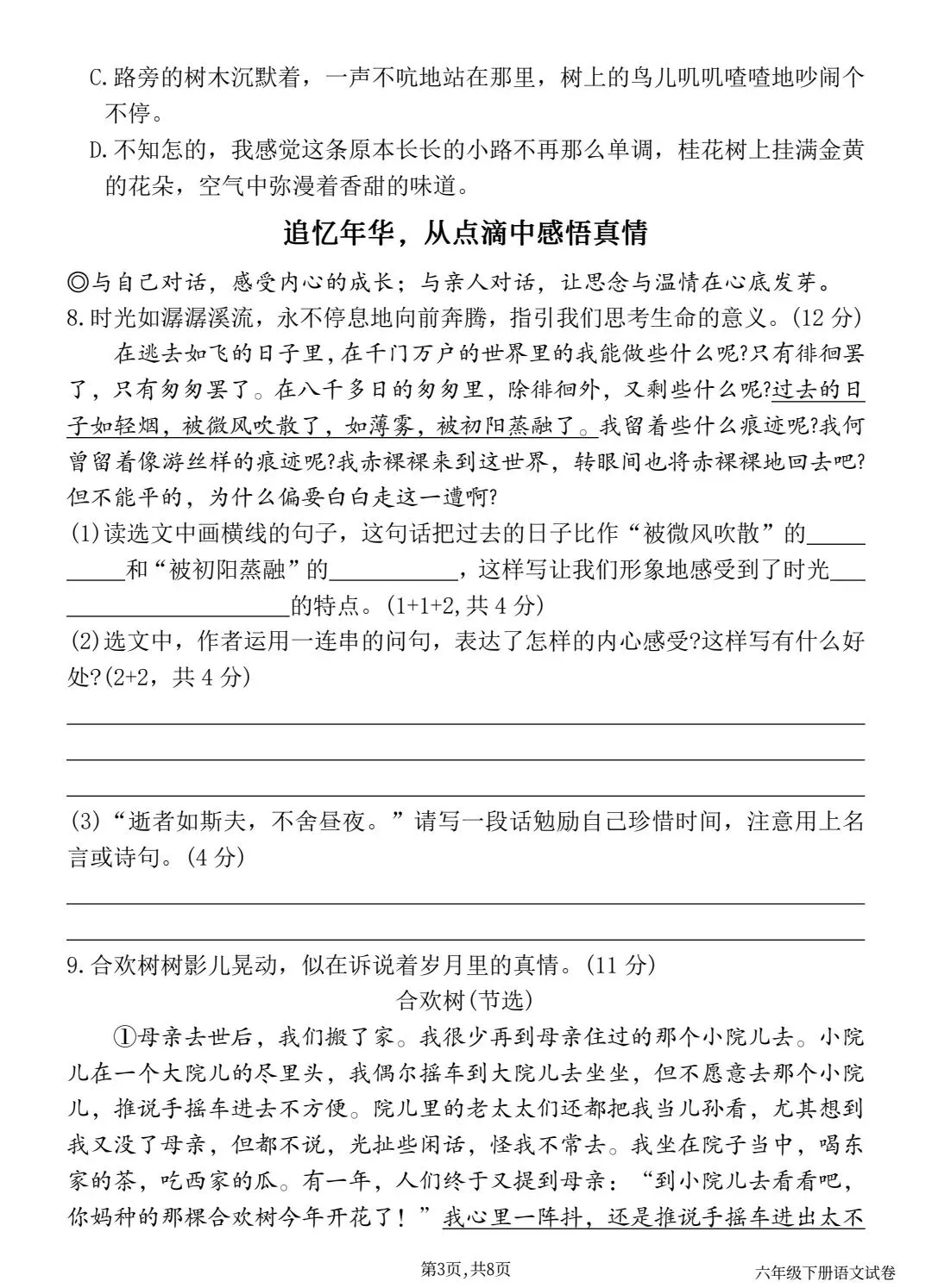 2026春六下语文第三单元情景精编试卷