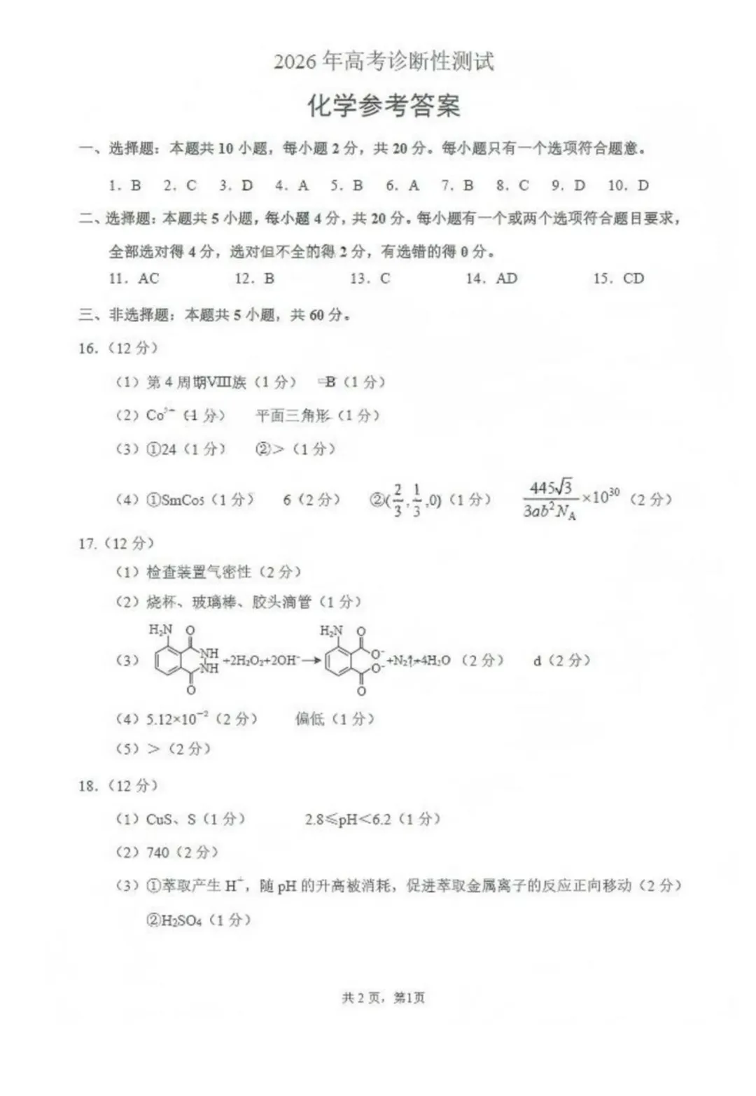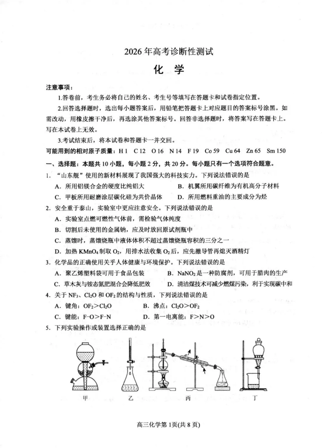 2026届山东烟台一模化学试卷与答案,下载方式如下: