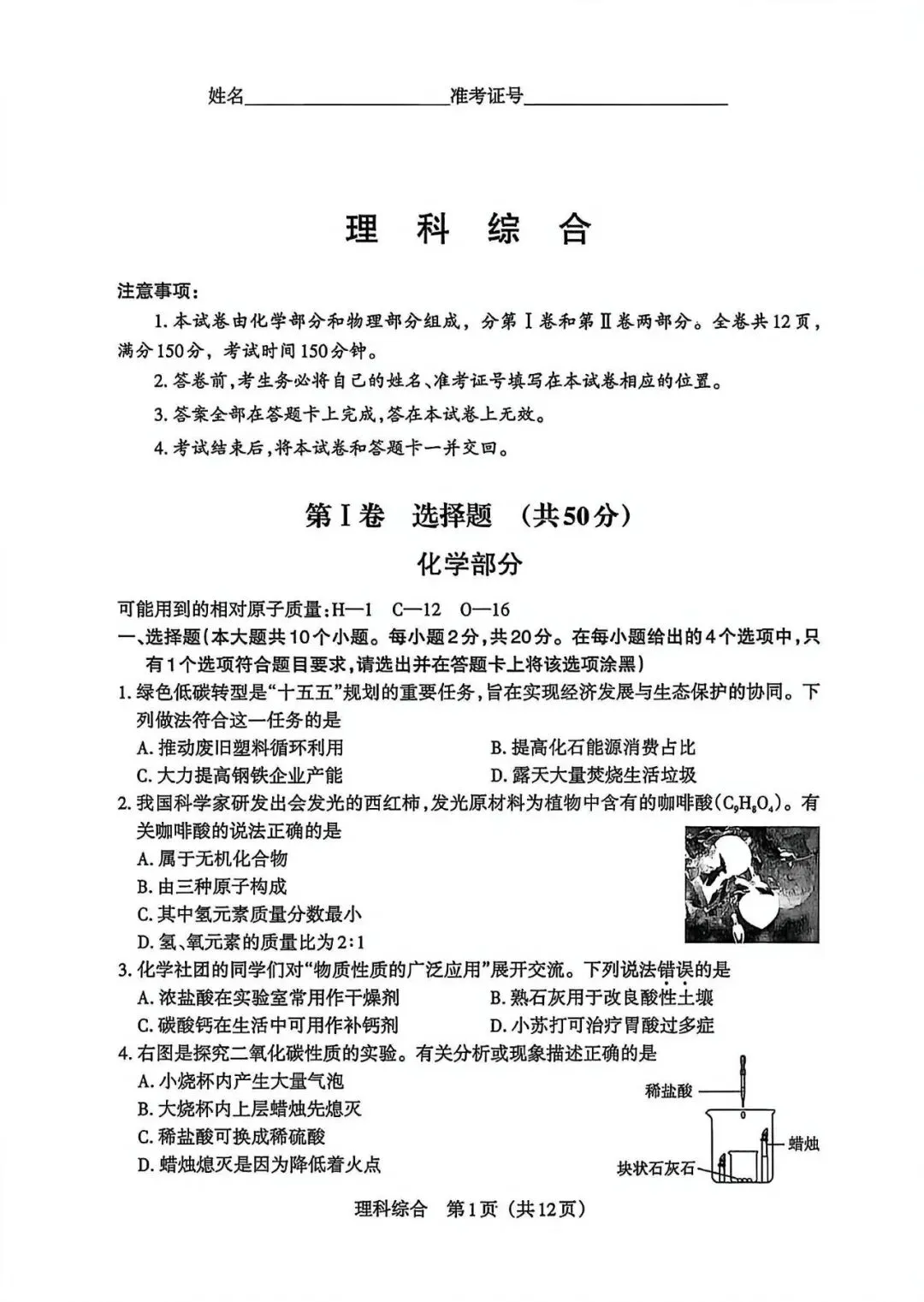 2026届山东烟台一模化学试卷与答案