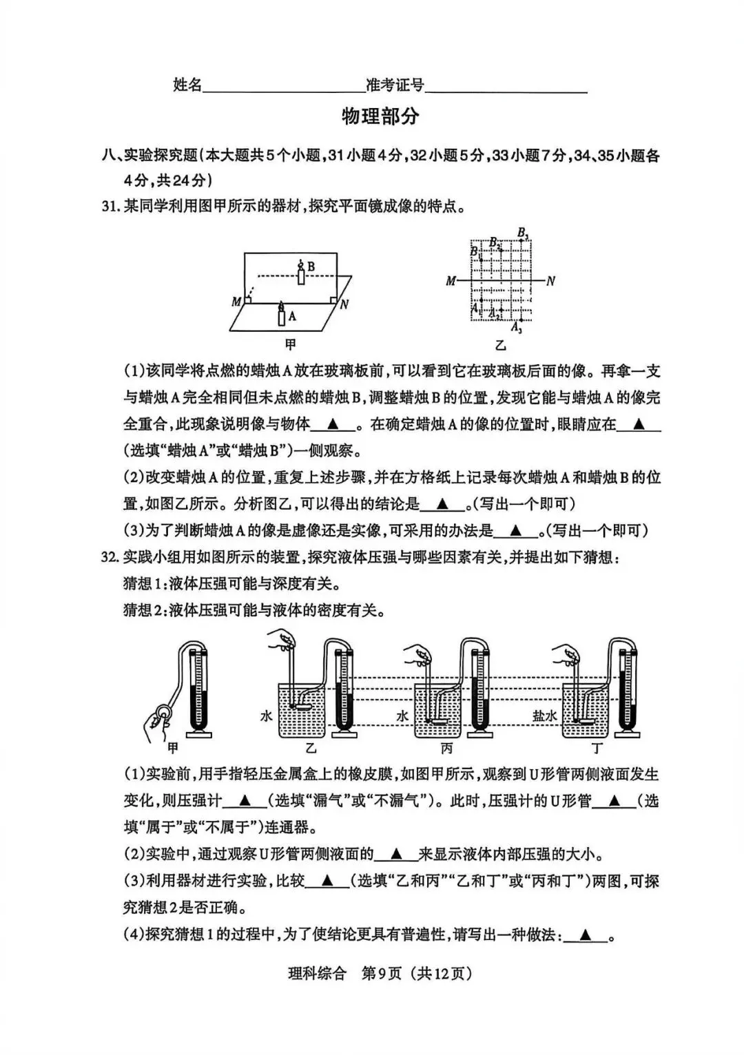 25年合肥市蜀山区一模物理试卷解析