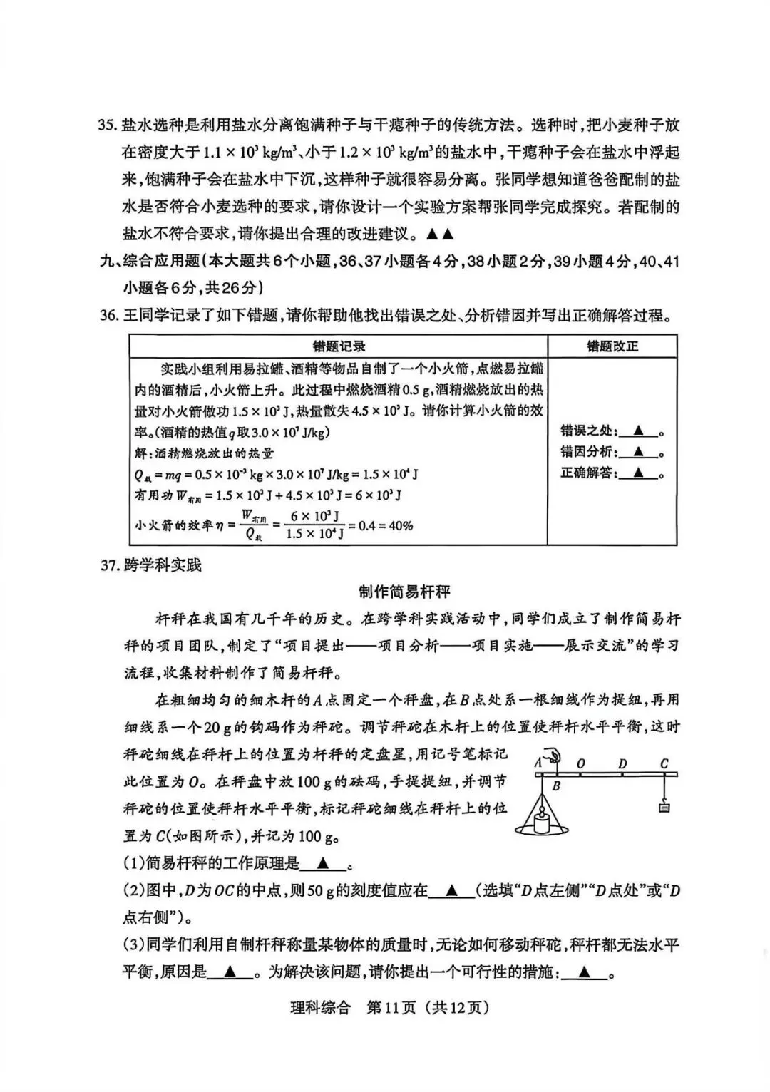 >2026山西百校联考理综试卷(含答案)