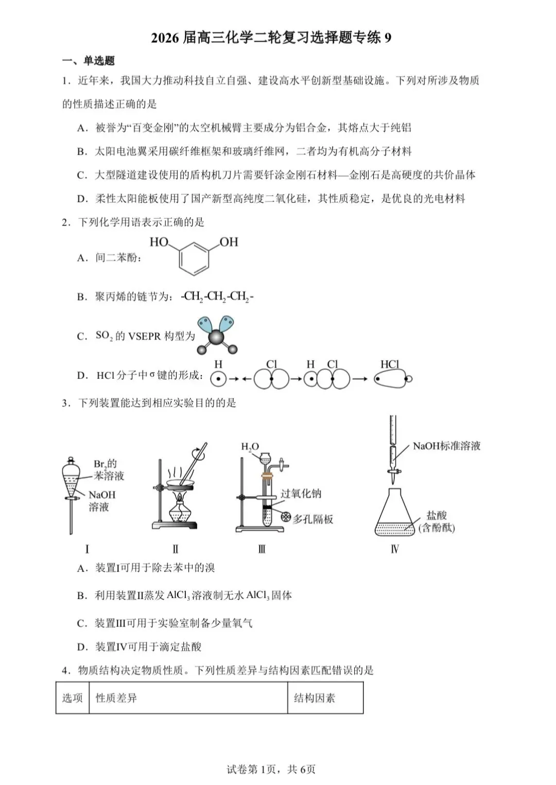 1.2026届高三化学二轮复习选择题专练1