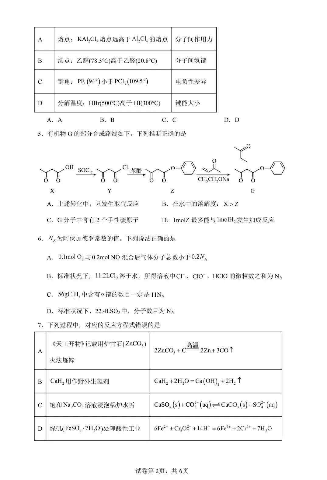 6.2026届高三化学二轮复习选择题专练6