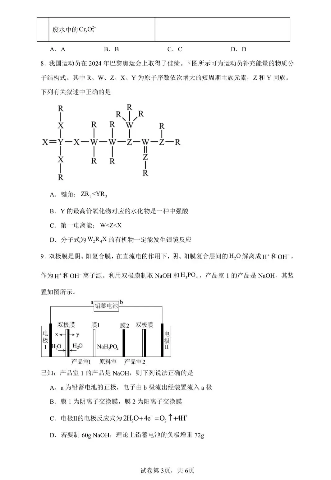 3.2026届高三化学二轮复习选择题专练3
