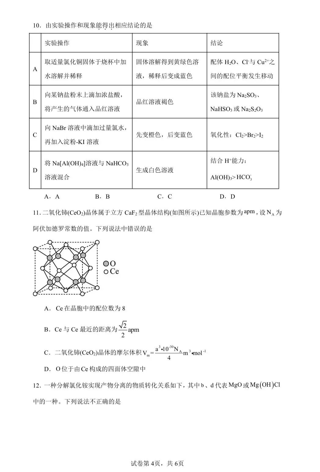 10.2026届高三化学二轮复习选择题专练10