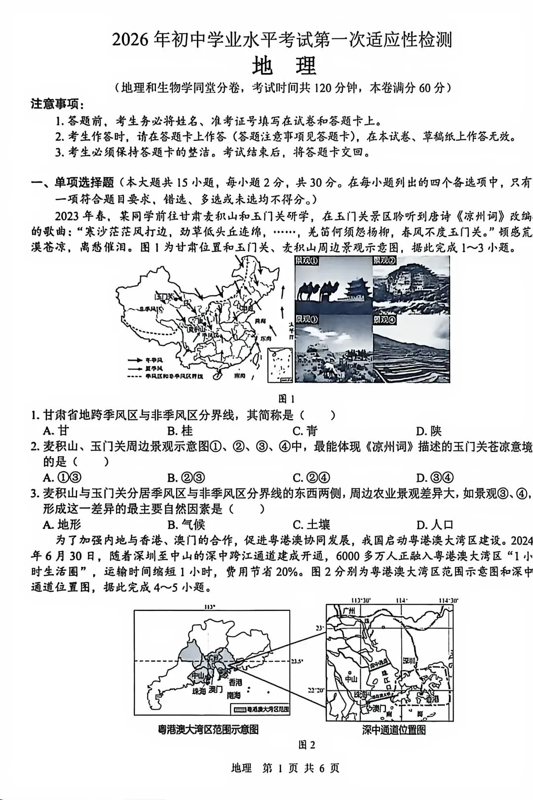 试卷资源||2026年广西省初中学业水平考试第一次适应检测地理试卷