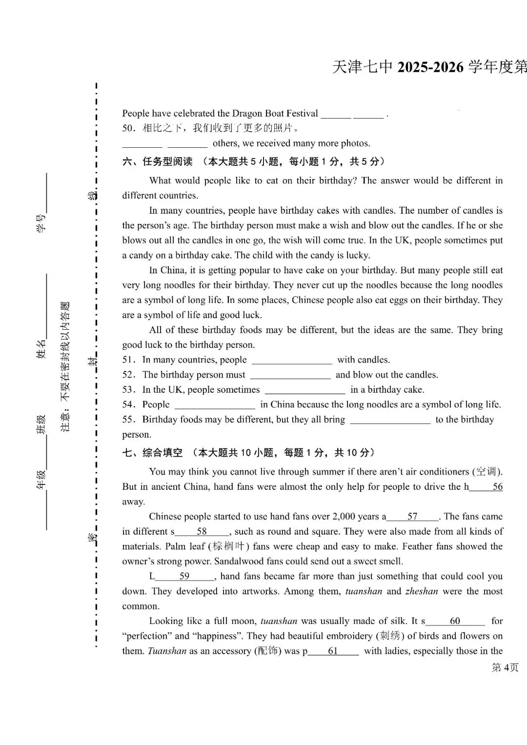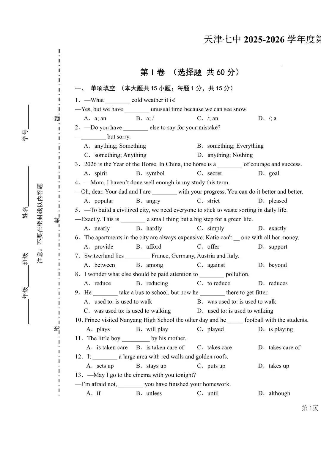 历年来天津市全科各次考试真题下载(含答案)