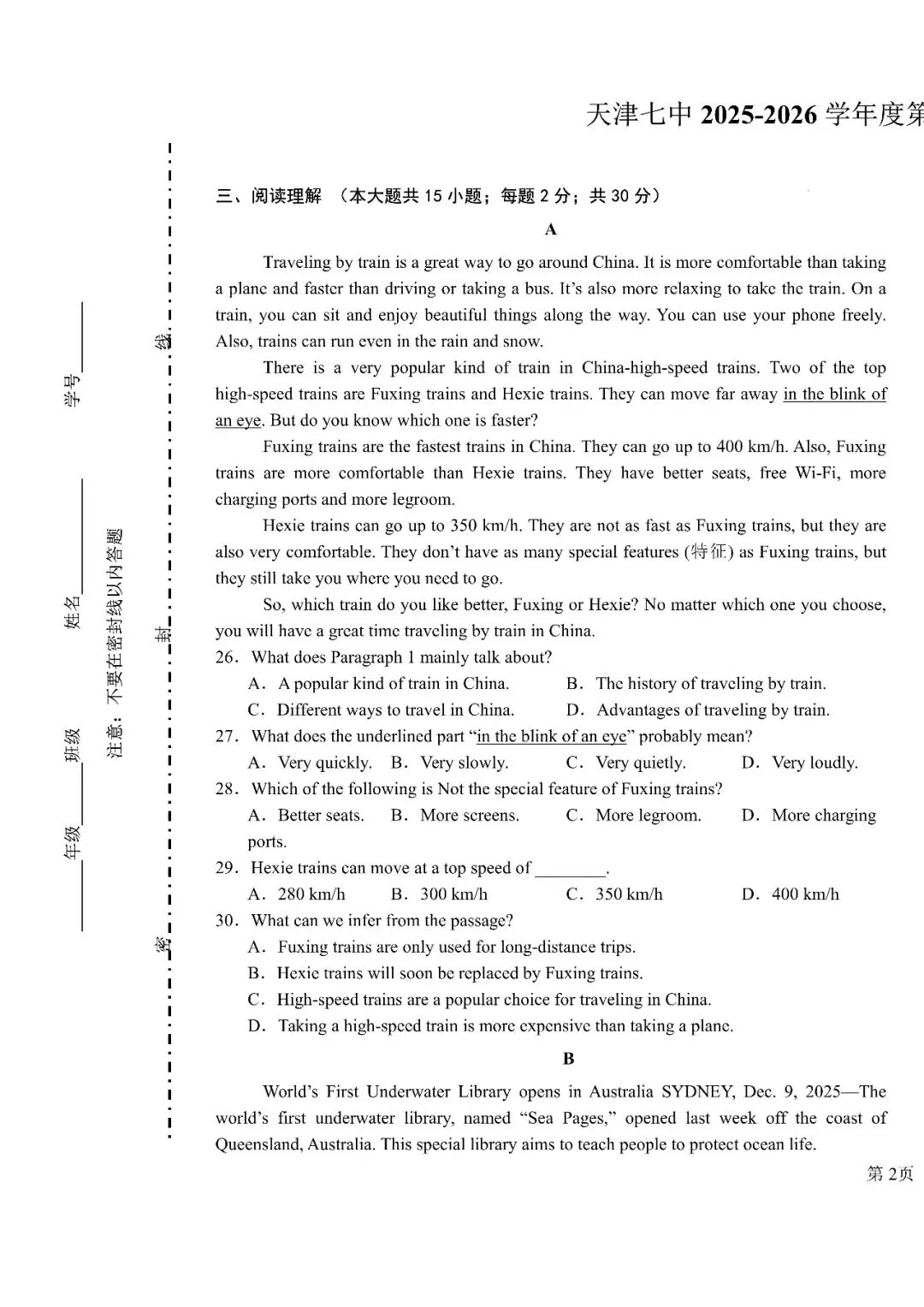2024年天津中考二模试卷及答案(无水印)