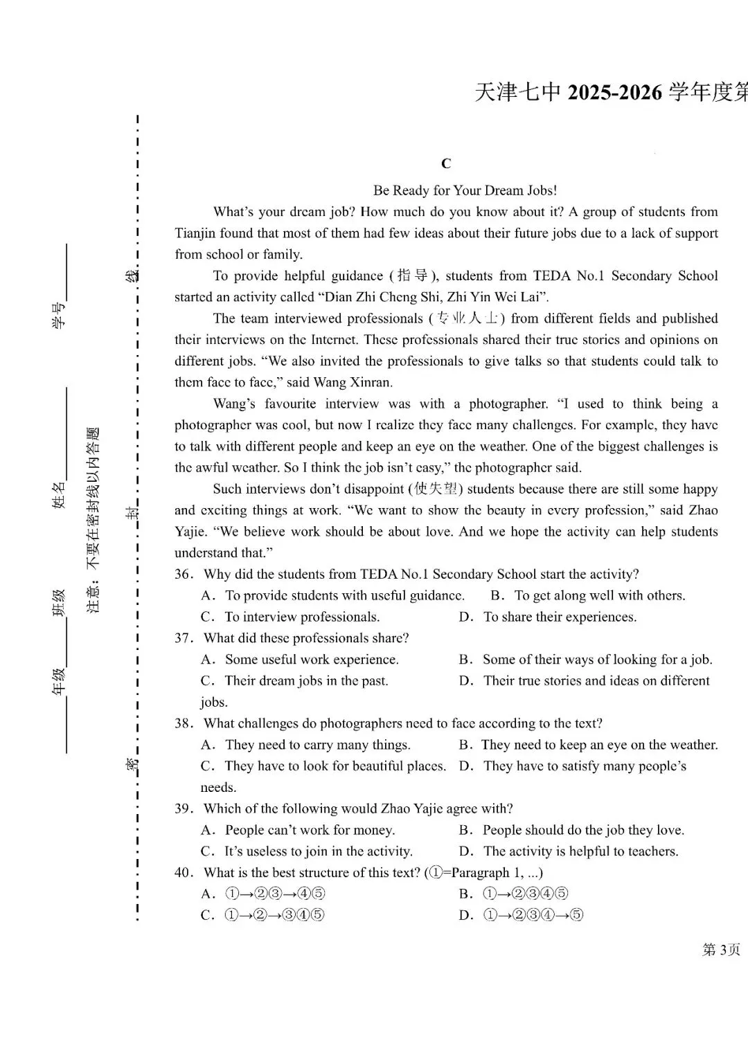 2025年天津中考二模英语听力mp3全集