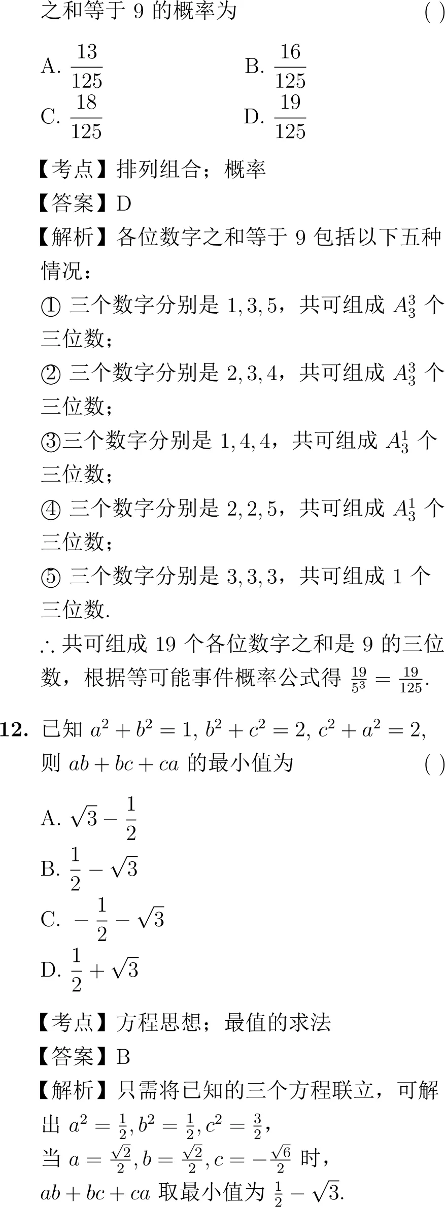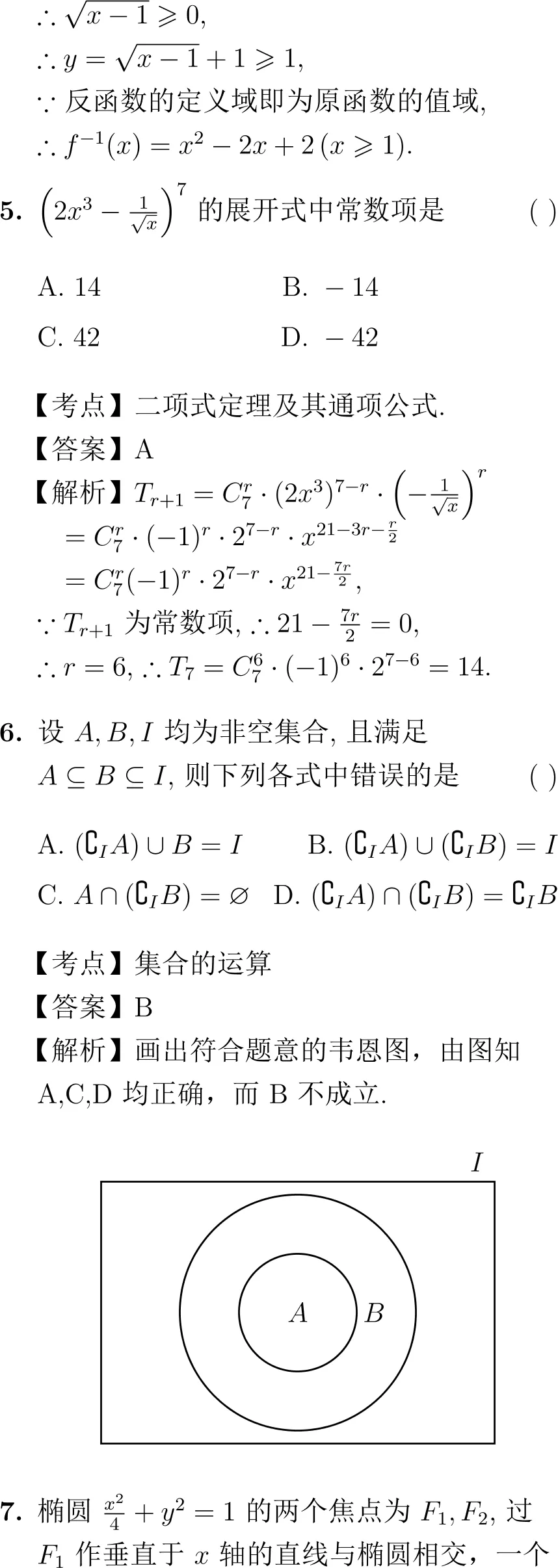 从内容布局看,选择题部分(共12题,60分)以基础概念和公式应用为主,如复数运算、函数奇偶性、向量模长计算、反函数求解、二项式定理、集合关系、椭圆定义、抛物线性质、三角函数图像变换、正四面体表面积比例、排列组合概率及最值问题等,题目设计巧妙,干扰项设置科学,有效区分不同层次考生。例如第3题通过单位向量夹角考查数量积公式,第9题结合三角恒等变换与图像平移,均体现对基本技能的精准把控。