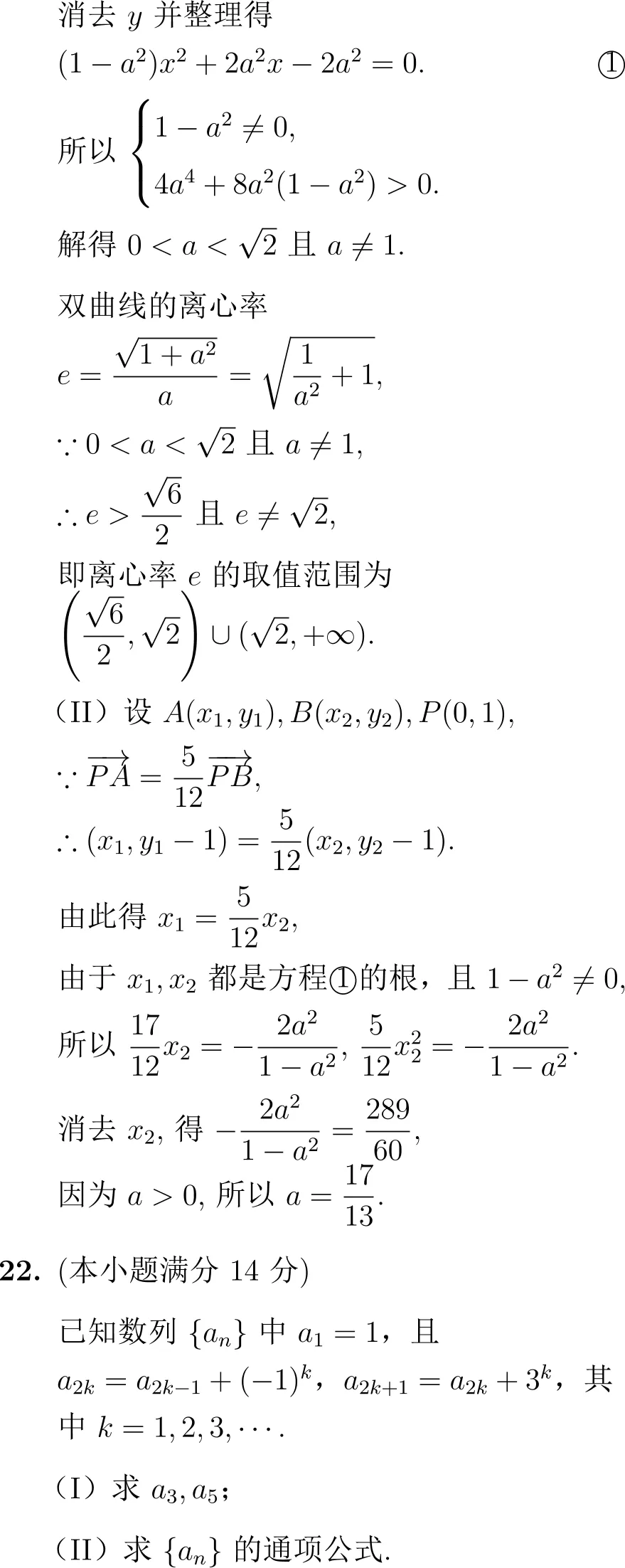 解答题(6题,74分)则突出综合性与创新性。第17题三角函数化简求周期与最值,考验恒等变形技巧;第18题概率分布列与期望计算,贴近生活情境,强化建模意识;第19题含参函数单调性分类讨论,体现导数工具的应用价值;第20题四棱锥中的点到平面距离与二面角计算,融合几何直观与坐标法,展现空间想象与代数运算的结合;第21题双曲线与直线交点问题,涉及离心率范围与向量比例条件,综合解析几何与代数方程思想;第22题数列递推关系求通项,采用分组累加法与奇偶分段表达,极具挑战性,是对高阶思维能力的集中检验。