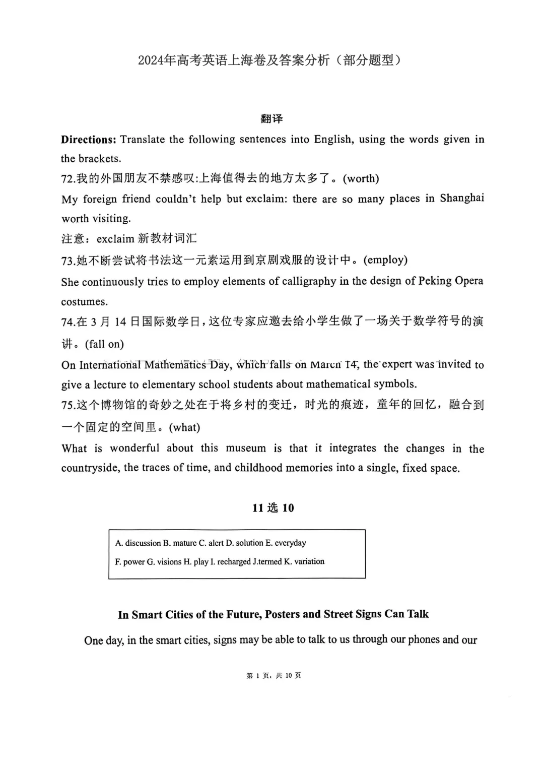 2024年上海春考英语试卷