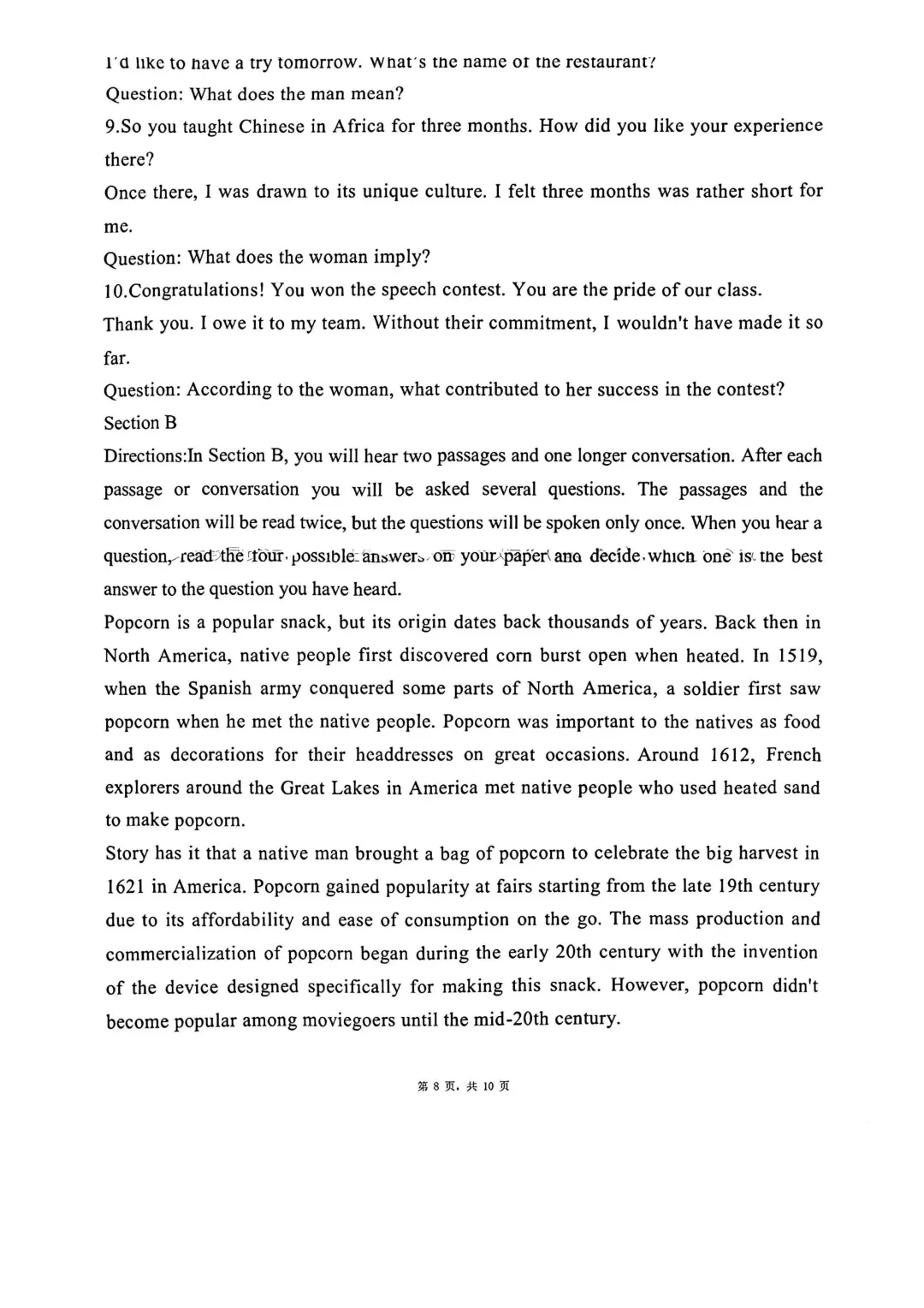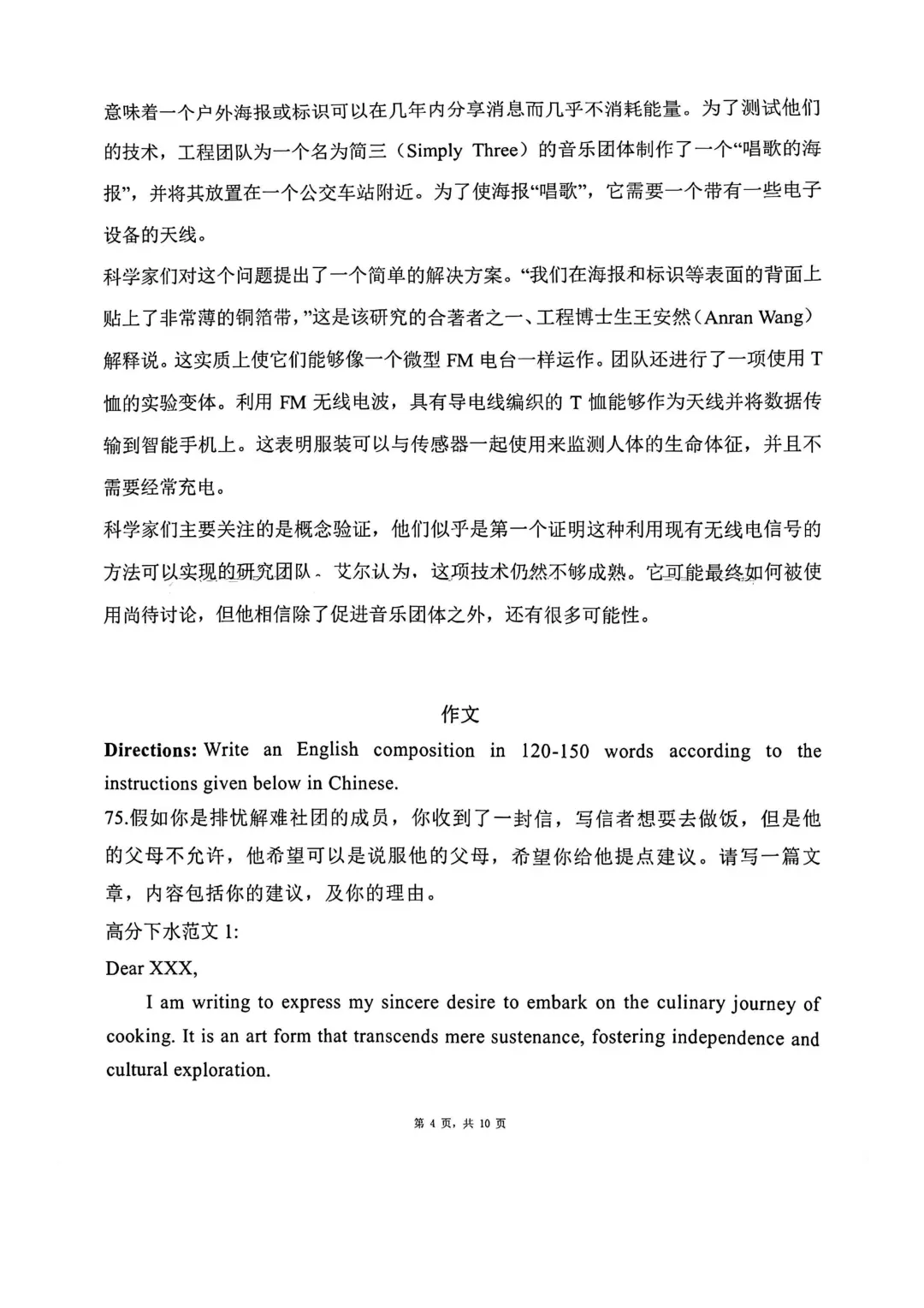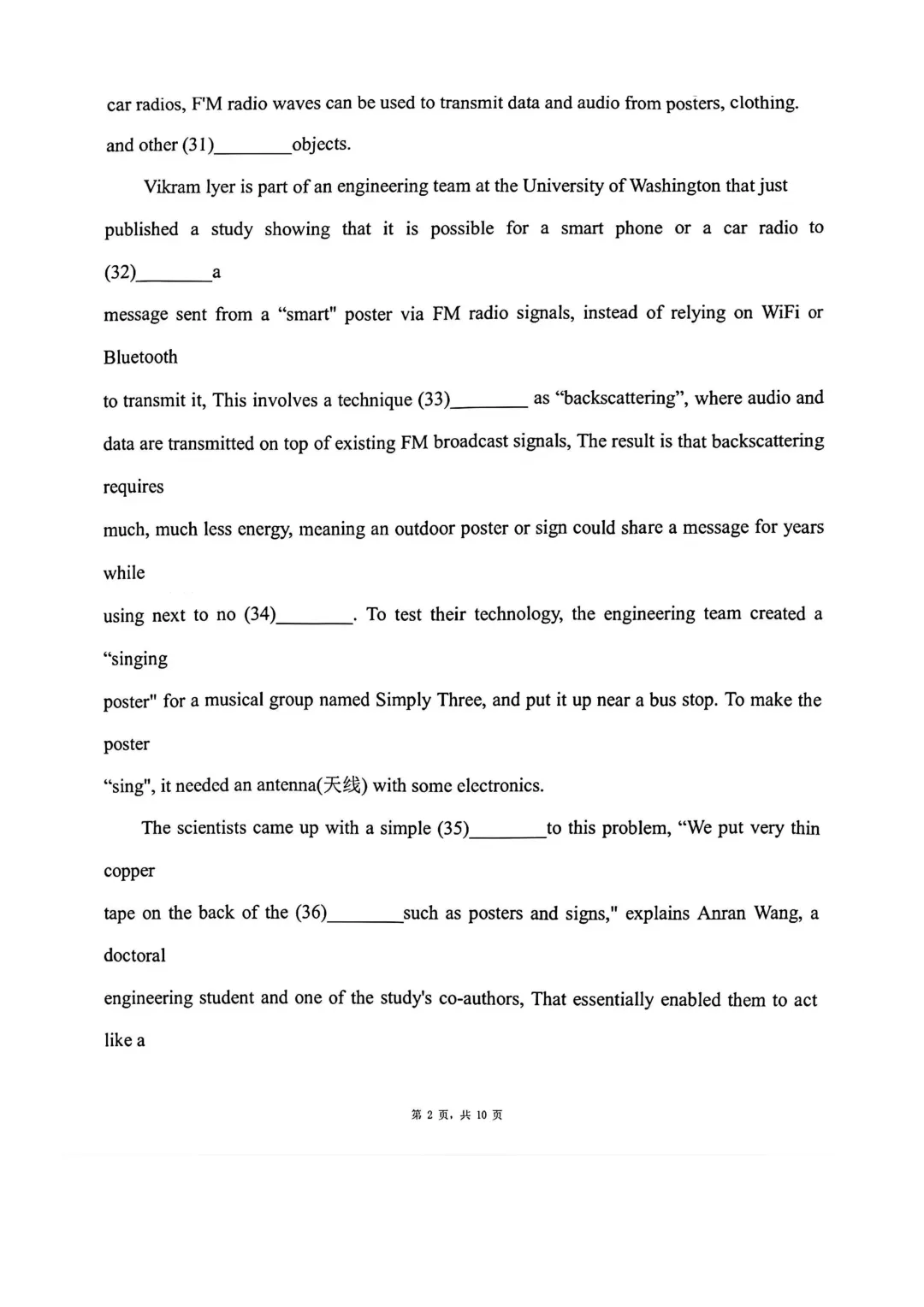 春考英语试卷