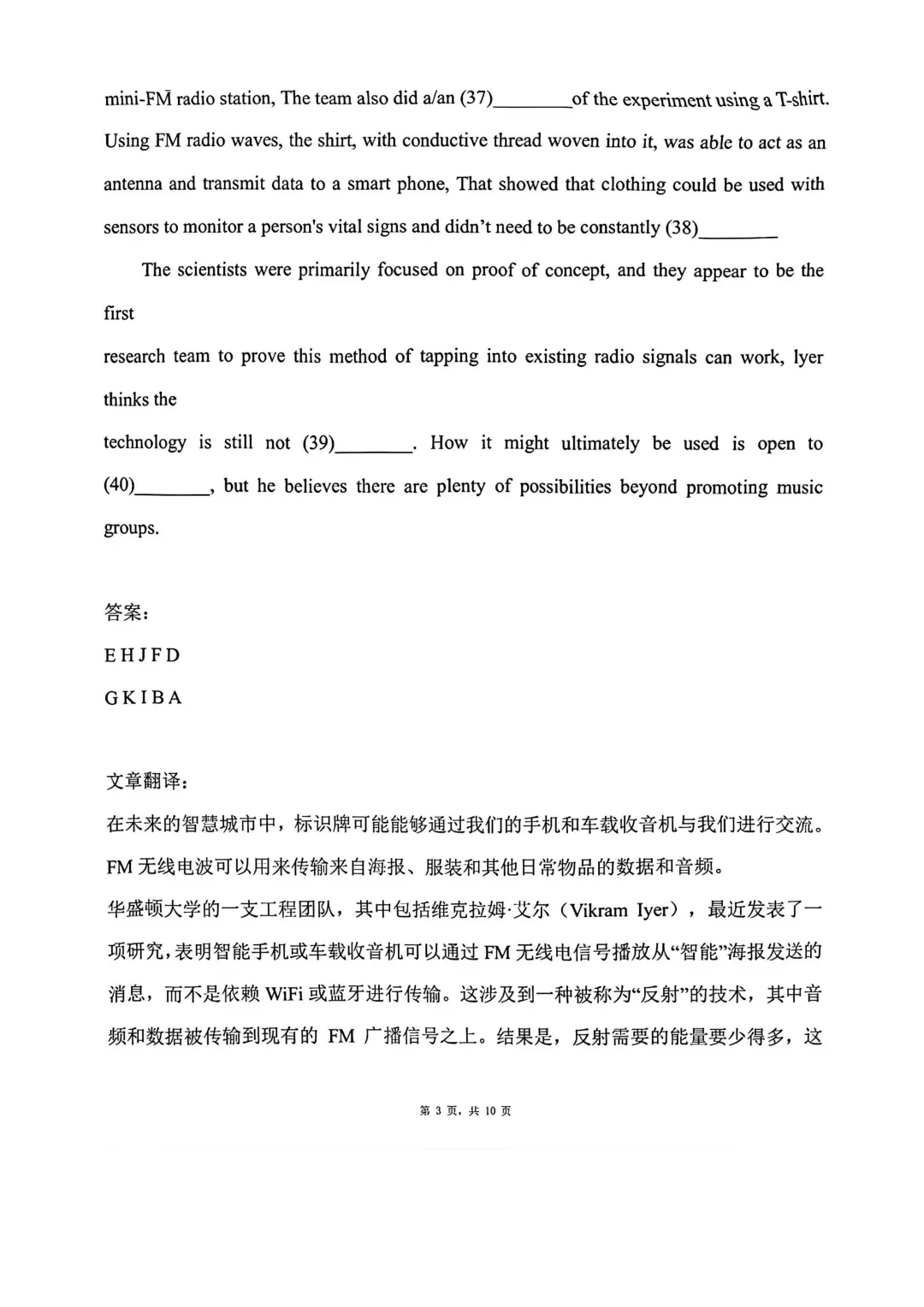 2019年上海春考英语试卷