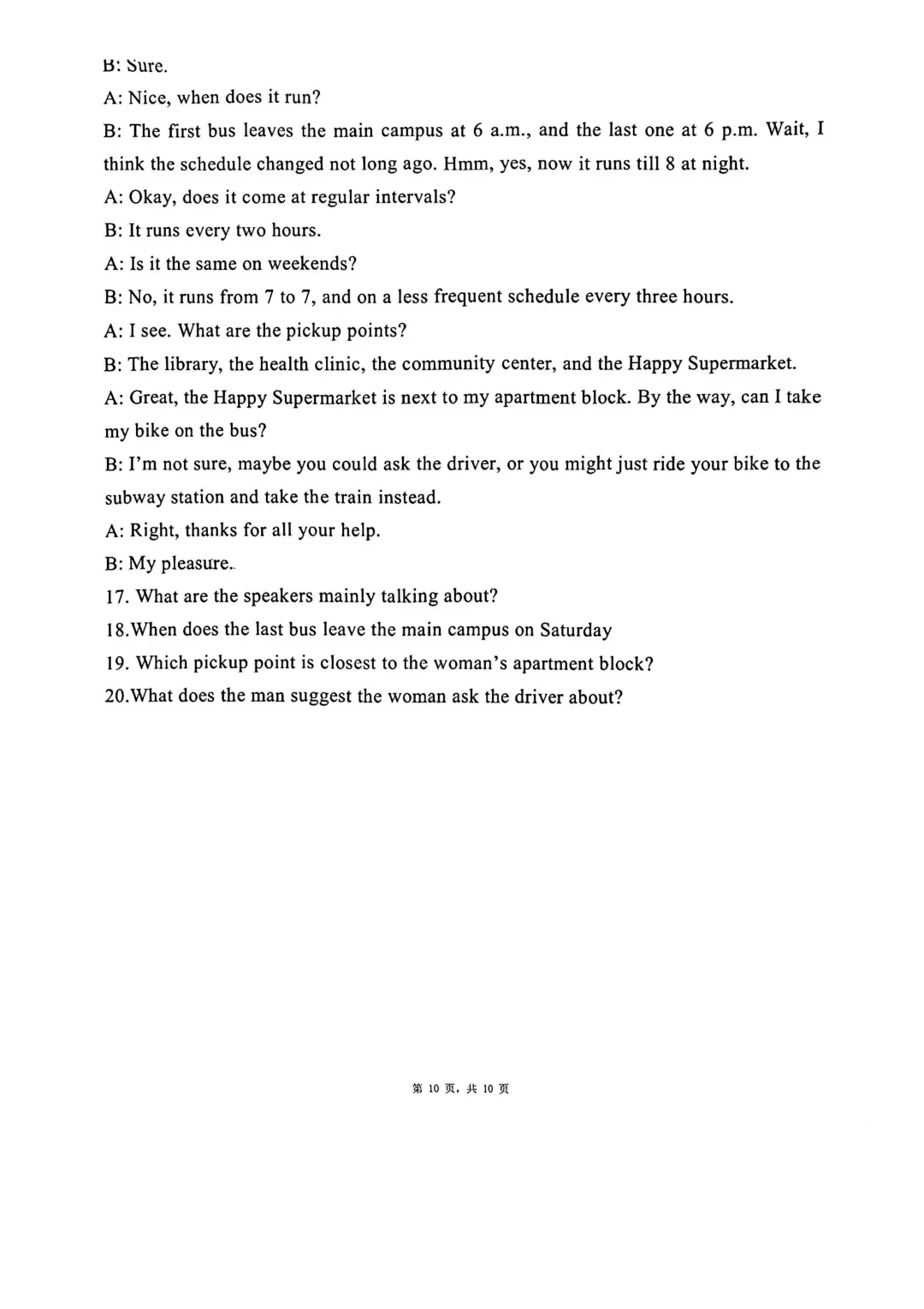 2020年上海春考英语试卷