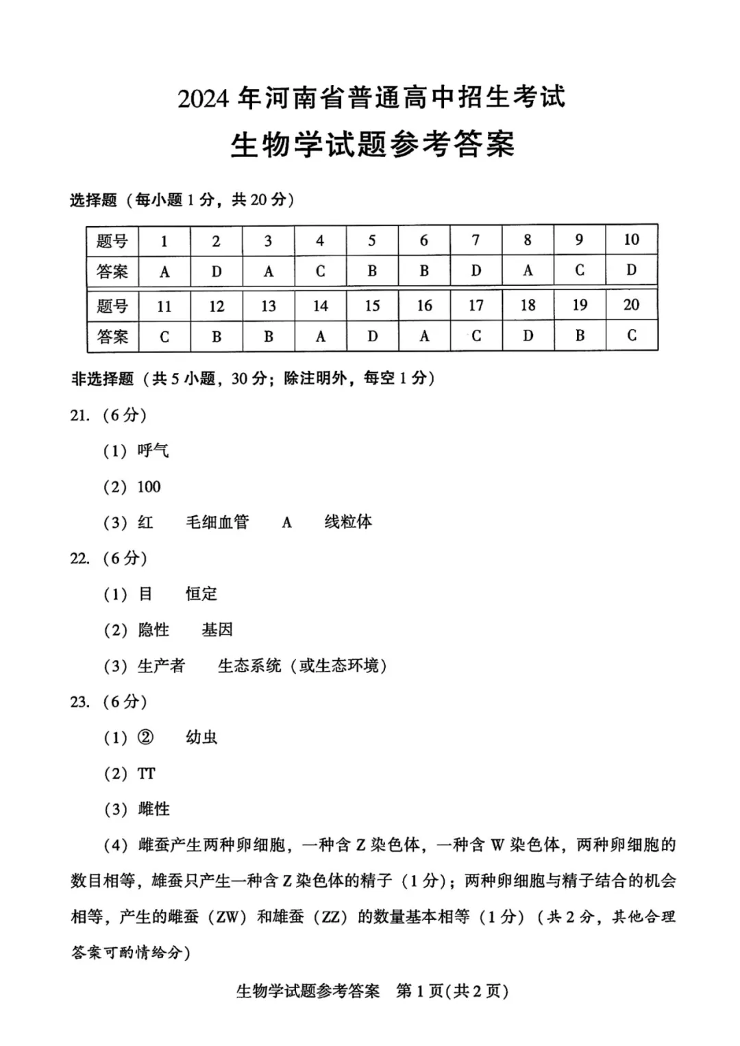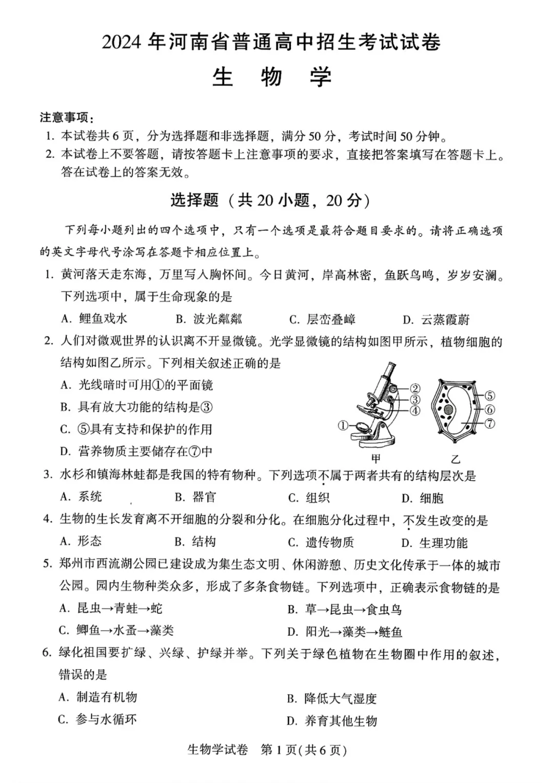 2020-2025河南中考-八年级·地理·生物·考试真题附答案·下载方式:识别下方二维码,进入公众号,发送汉字【地理生物真题】