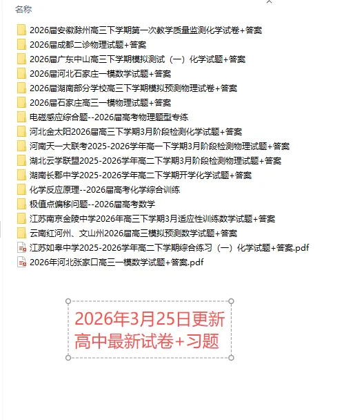 >【高一、高二、高三最新月考试卷】2026年3月25日更新